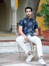 About The Product- Blue Jaipuri Printed Cotton Half Sleeves Shirt With Natural Colors And Unique Designs.