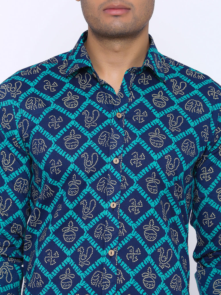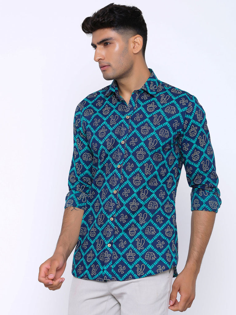 About the product: This Blue Patola Printed cotton Shirt is made to make you look smart and handsome. This shirt is so comfortable yet so stylish.