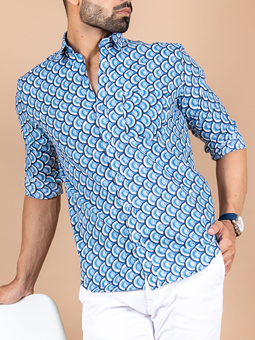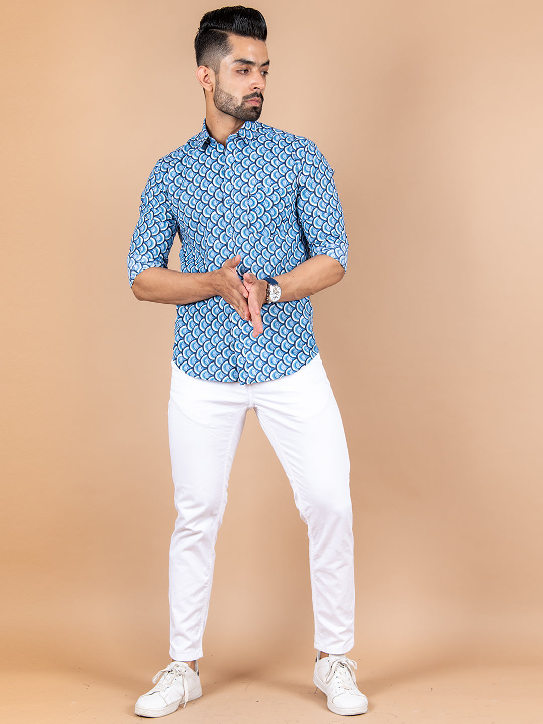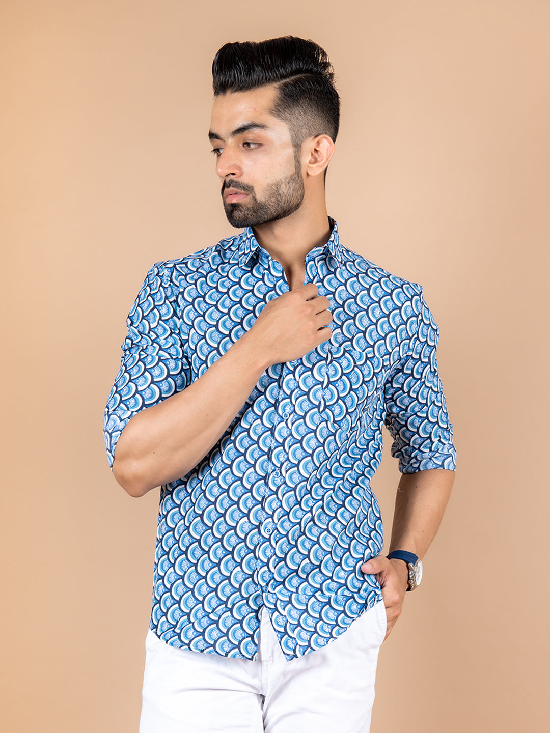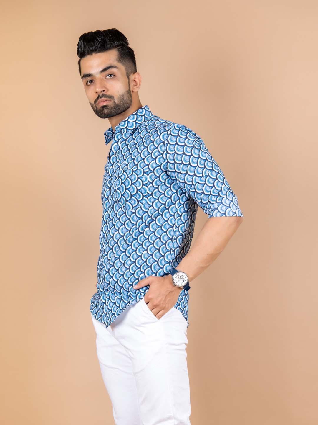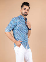About Product-Blue Takeshi Printed Cotton Shirt, uniquely customized for you. The perfect combination of a cool and classy shirt for men.