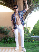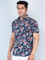 About the product- This Blue Tropical Printed Half Sleeves Crepe Shirt is made to make you look smart, this comfortable shirt is your wardrobe essential which gives a stunning look while wearing.