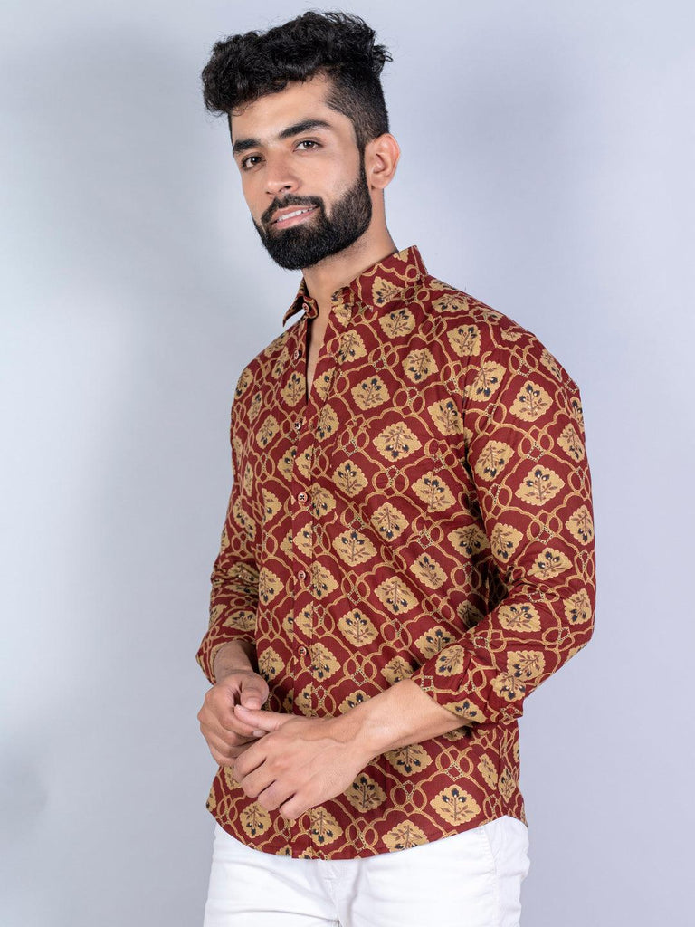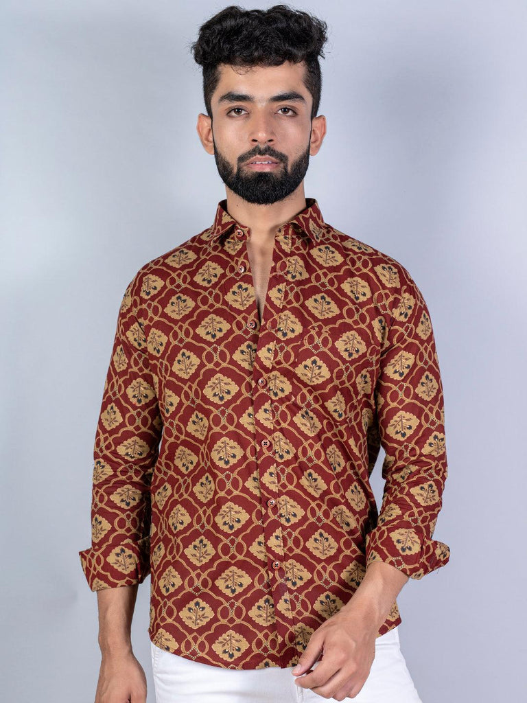 About the product: This brick red floral printed full sleeves cotton shirt is made to make you look smart. This comfortable shirt is a must inside your wardrobe.