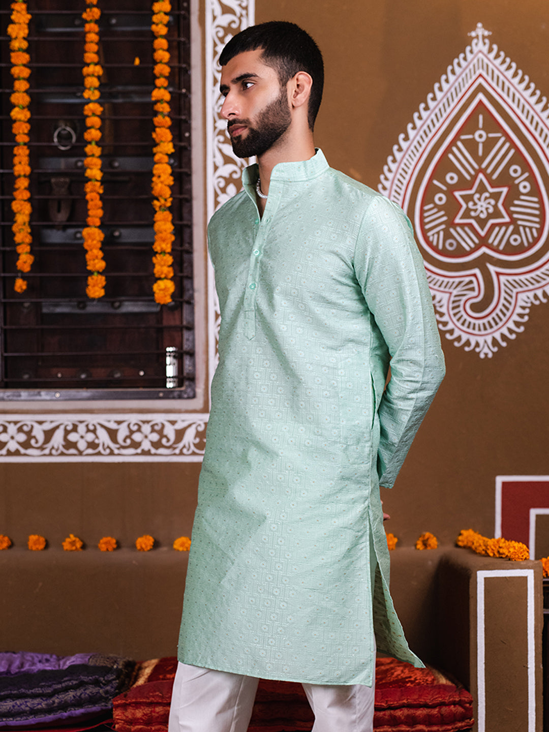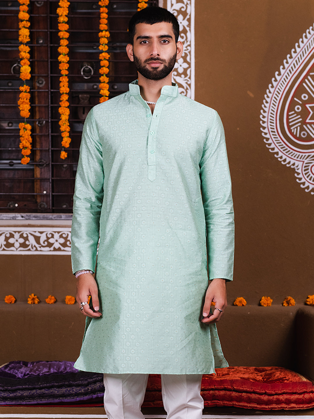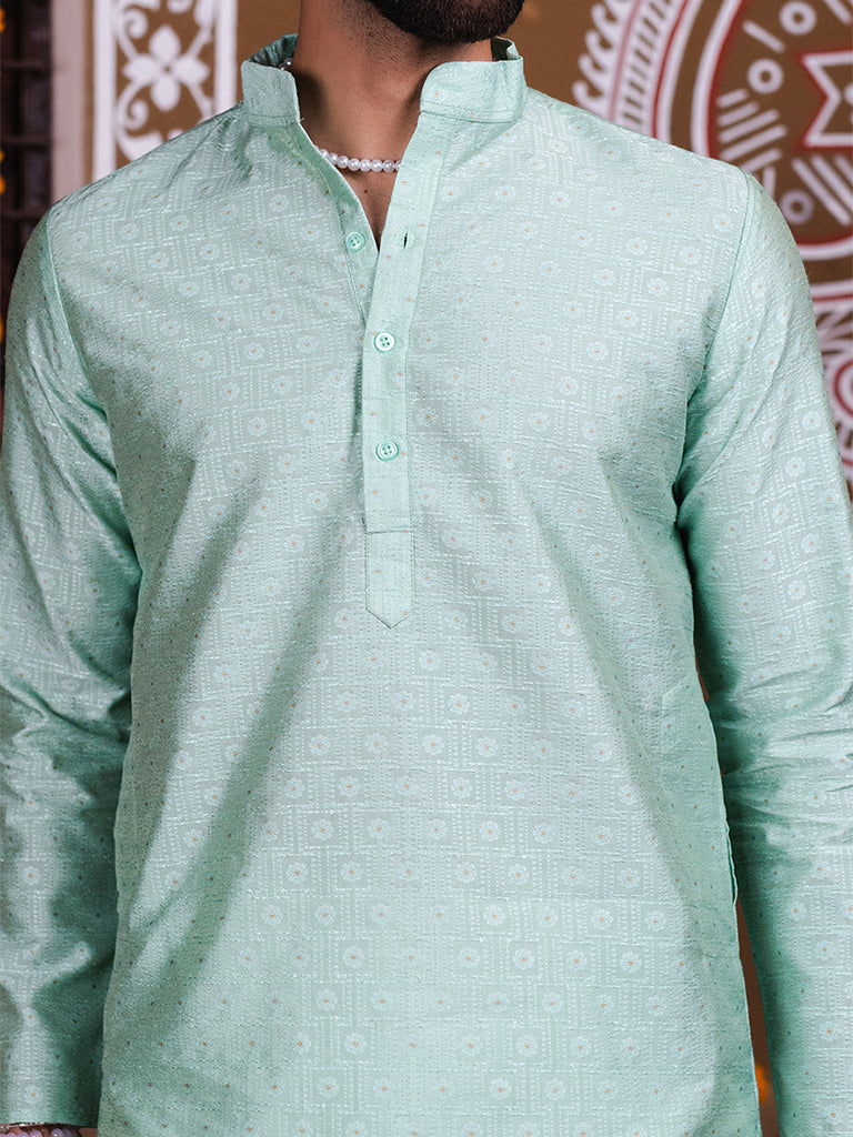 About the product- Brook Green Floral Jacquard Men's Kurta is a beauiful kurta with pretty colour and unique designs to help you look good and stay comfortable!