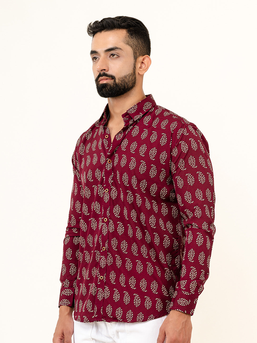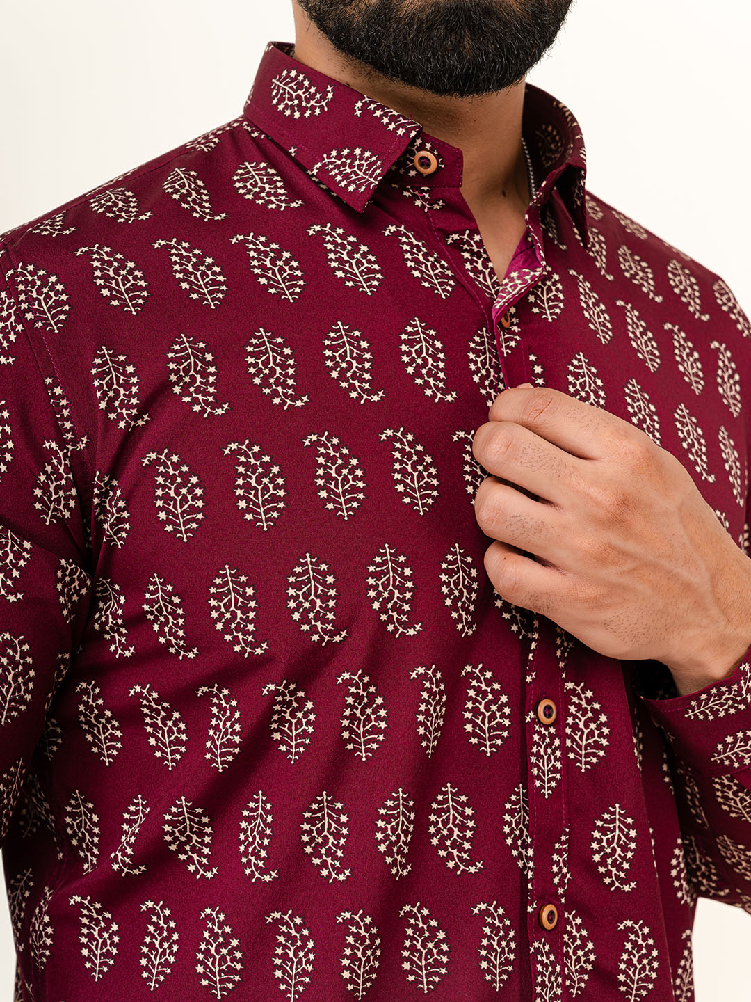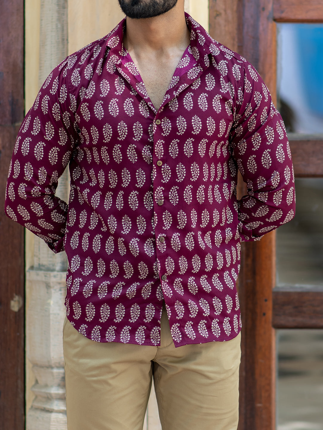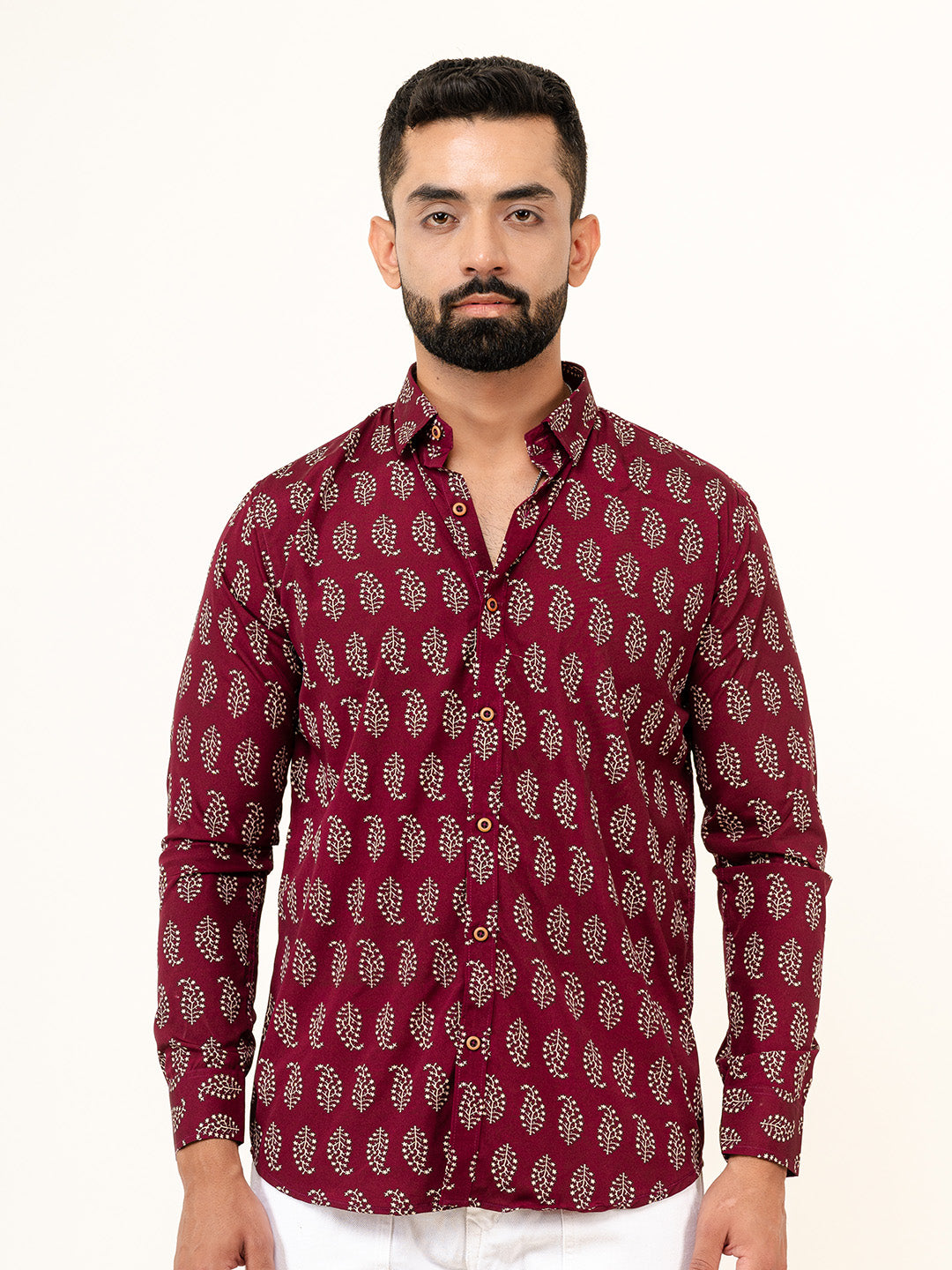 About Product- Burgundy Leaf Print Shirt perfect for wearing on birthdays, parties, and get-togethers wear this shirt and add color to your wardrobe.