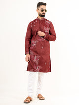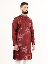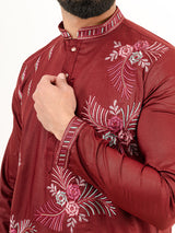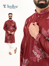 Elevate your festive wardrobe with the Burgundy Silk Embroidery Designer Kurta for Men. Crafted with intricate embroidery on luxurious silk fabric, this kurta exudes elegance and charm, making it perfect for special occasions.