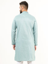 Add a touch of royalty to your wardrobe with this Cadet Blue Abstract SIlk Embroidered Kurta for men. Made from premium silk, it features intricate embroidery on the yoke and cuffs, elevating your traditional style. Perfect for festive gatherings and special occasions, it promises both comfort and elegance.