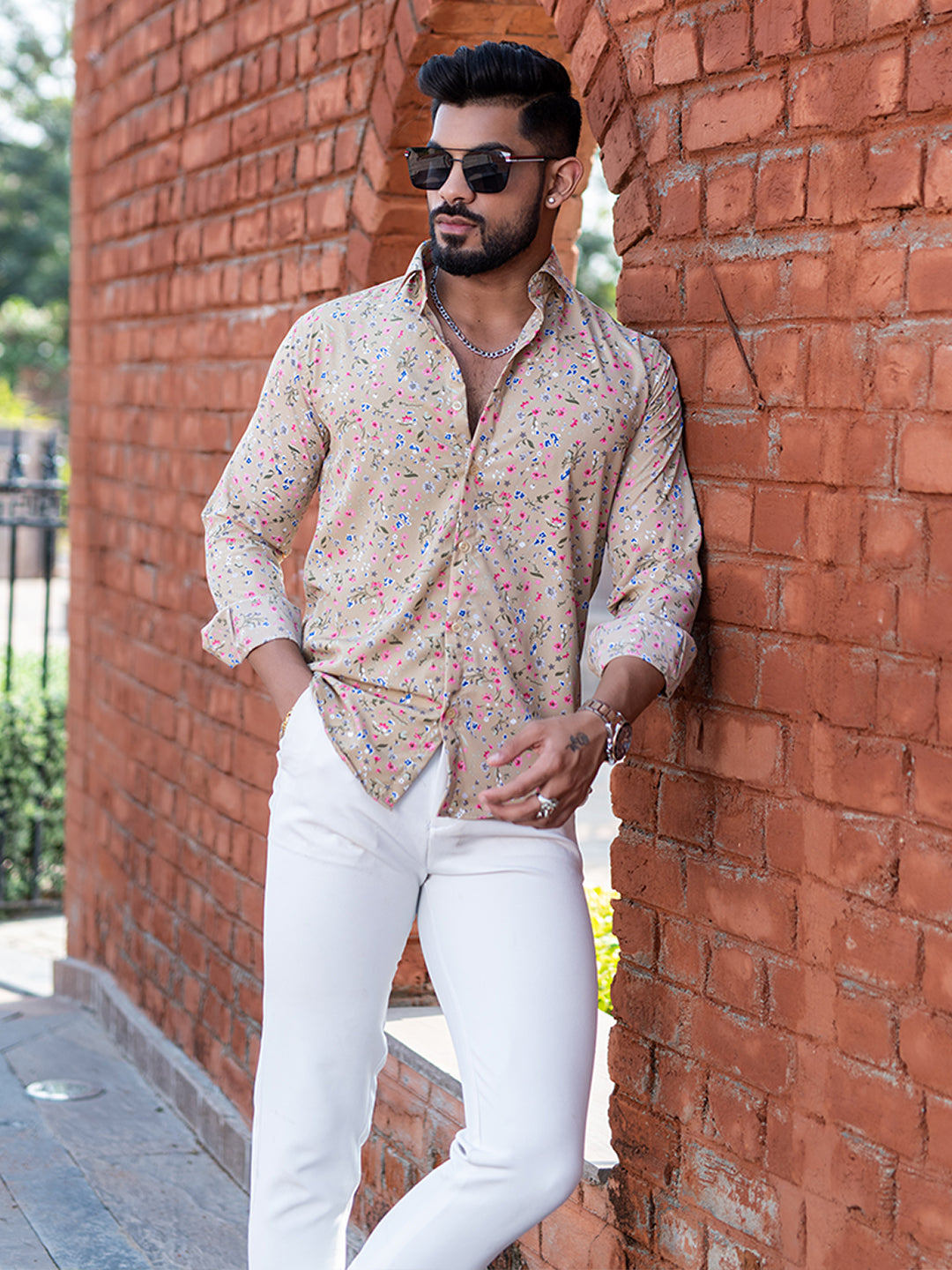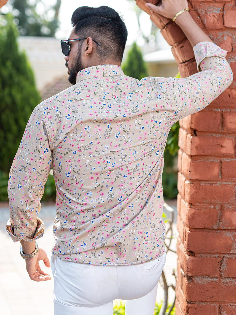 About the product- Explore the collection of beautifully designed shirts from Tistabene. This Camel Brown Floral Printed Full Sleeves Crepe Shirt is your wardrobe essential and makes you look trendy!