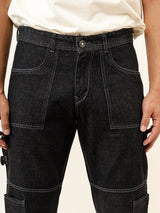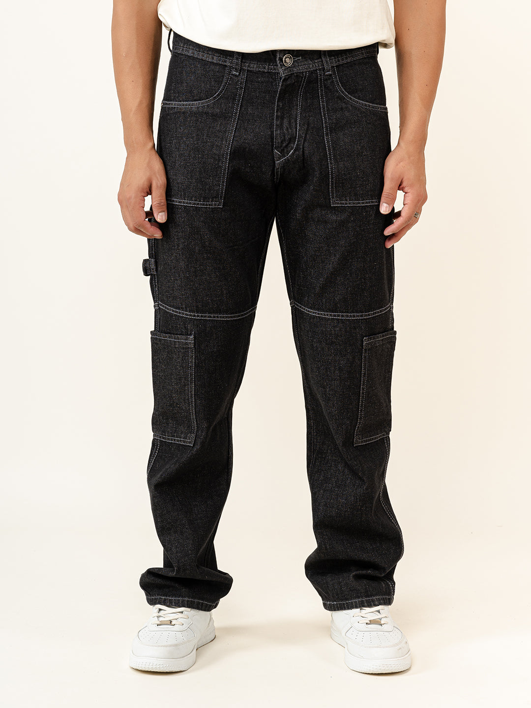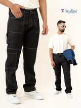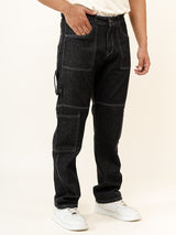 Carbon Black Straight-Flared Fit Cargo Denim Jeans