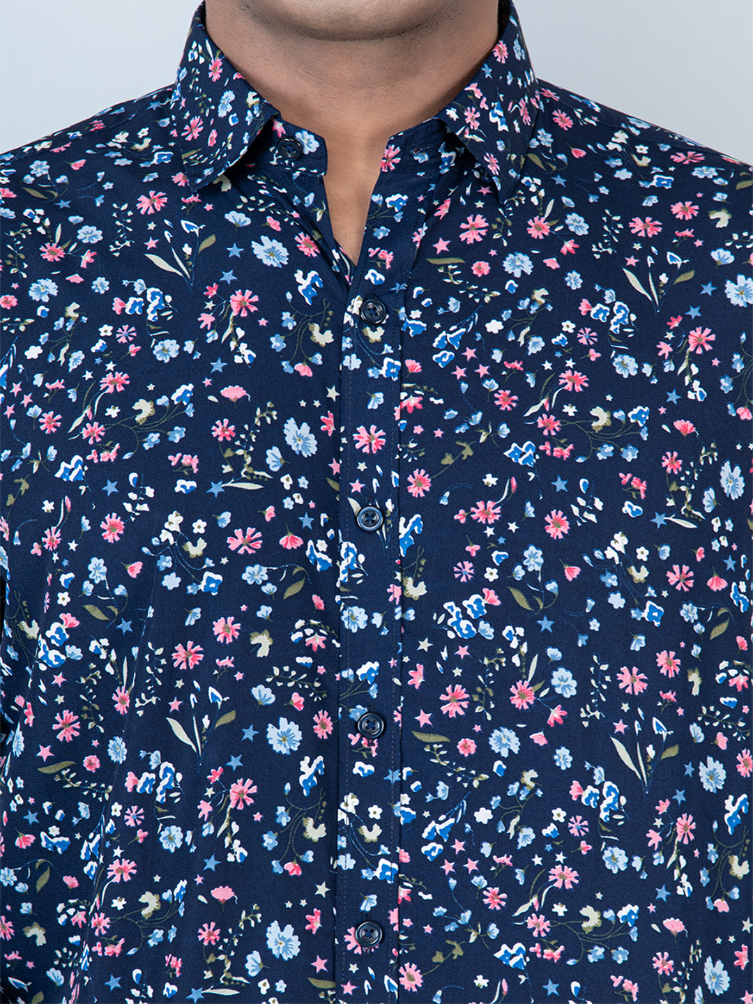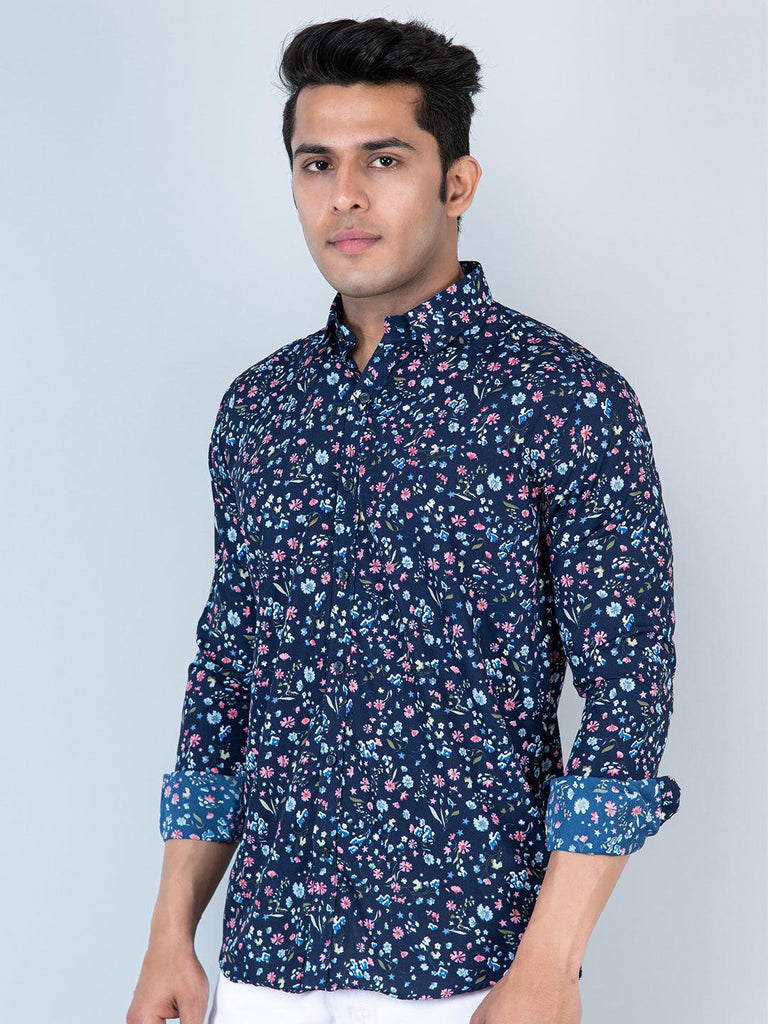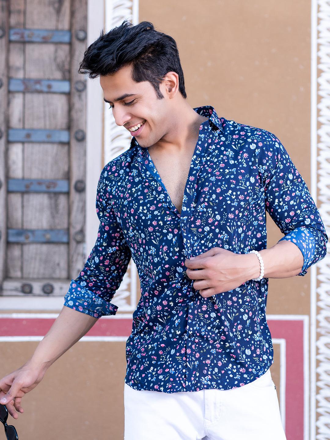 About the product- This Blue Floral Printed Full Sleeves Crepe Shirt is made to make you look smart, this comfortable shirt is your wardrobe essential which gives a stunning look while wearing.