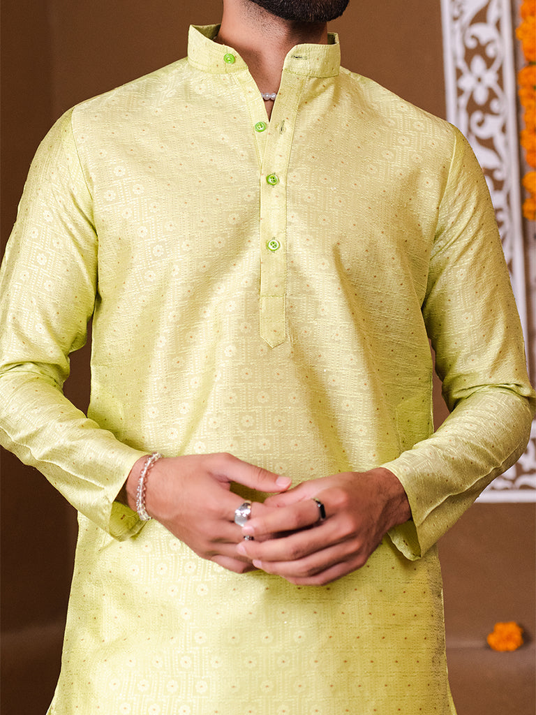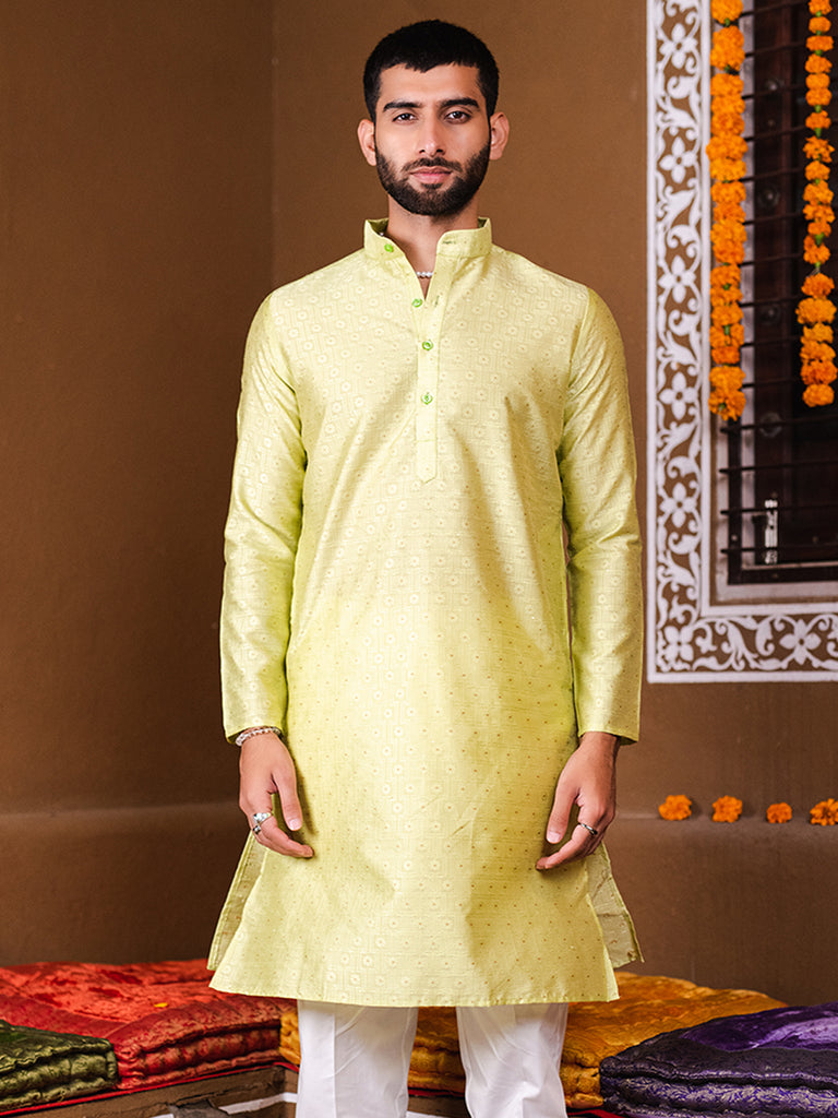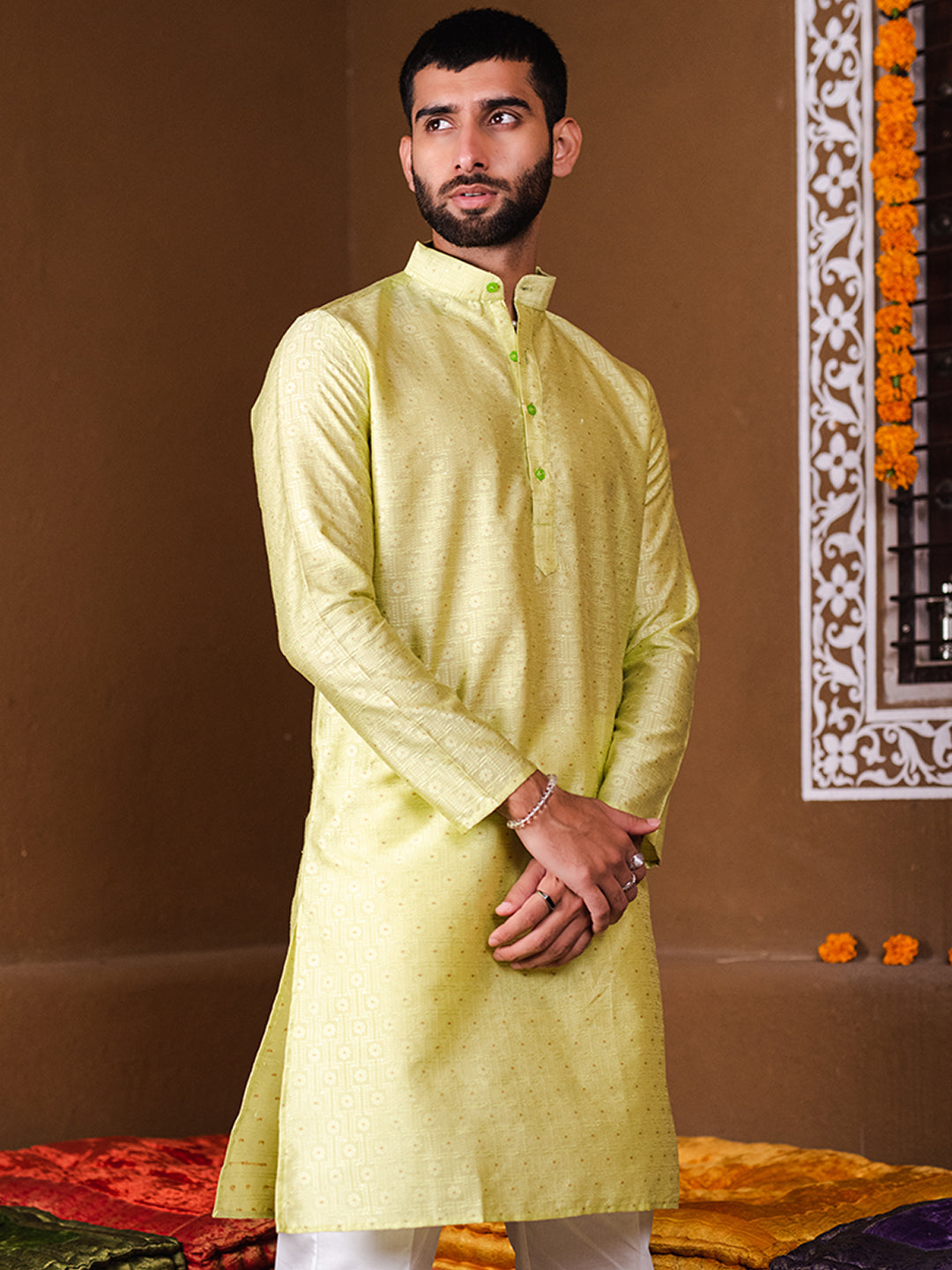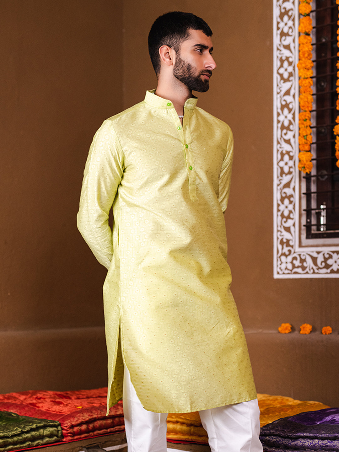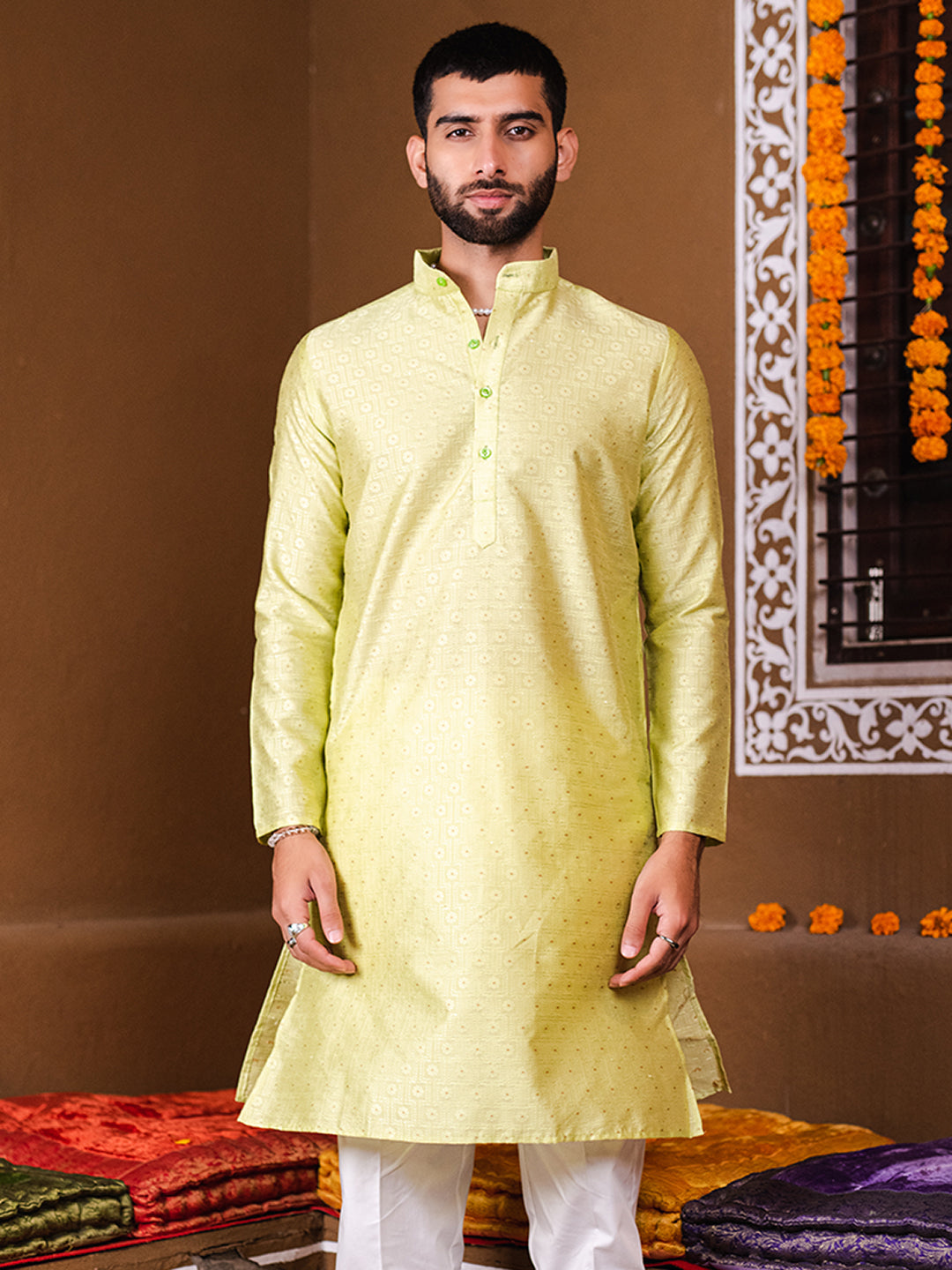 About the product- Daiquiri Green Floral Jacquard Men's Kurta is a beautiful kurta with unique designs and is also very comfortable!