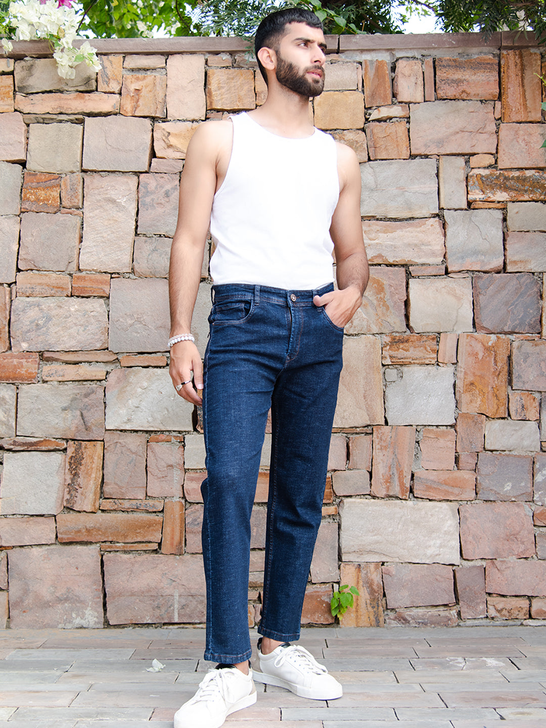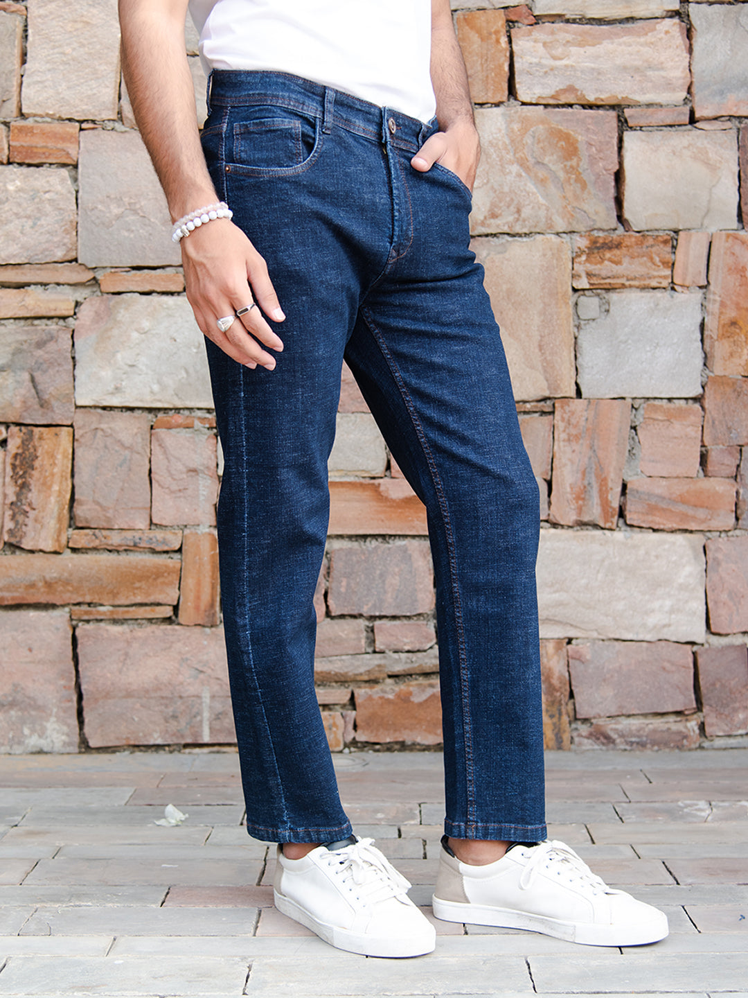 These Denim Jeans offer a sleek and contemporary style. Crafted from premium denim, they provide a comfortable fit and a modern silhouette.The denim jeans for men provides a contemporary silhouette, perfect for showcasing your favorite footwear.