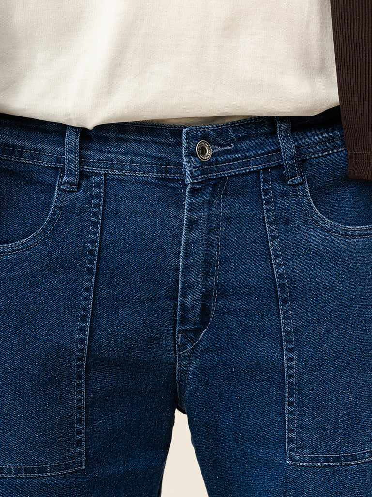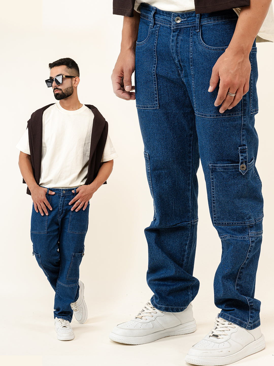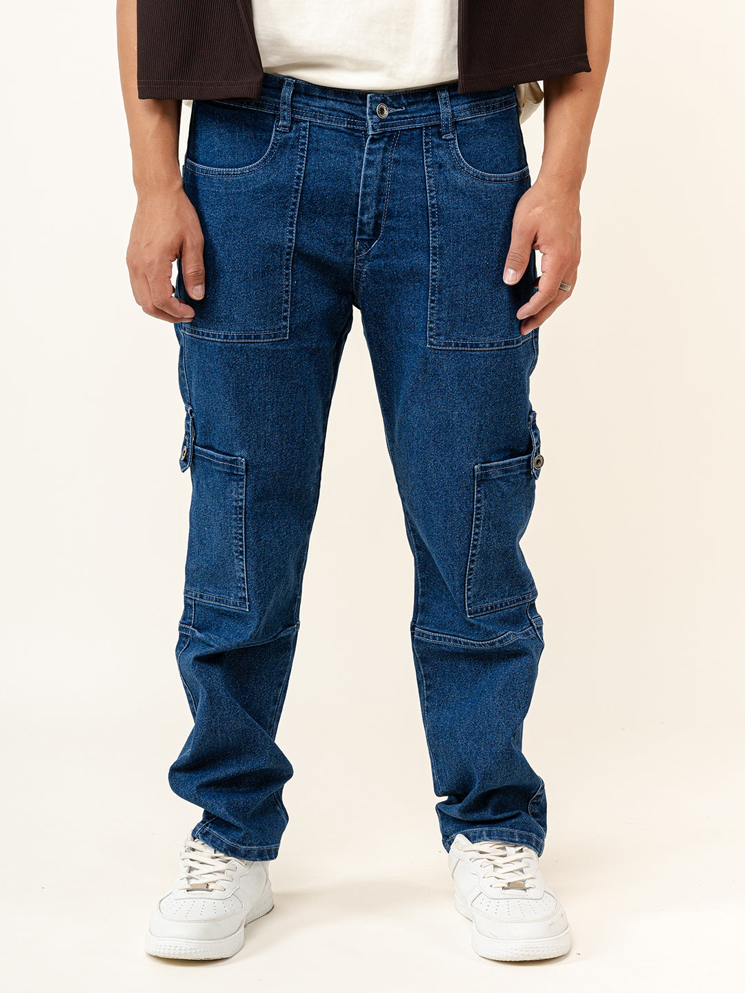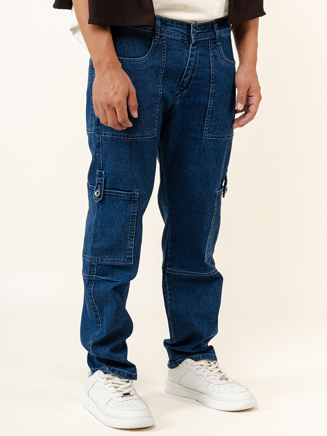 Occasion-  Dark Blue Comfort-Fit Cargo Denim Jeans versatile to a range of events, include informal events and weekend trips. They are appropriate for both daytime and evening activities because of the elegant touch that the dark blue tone offers.