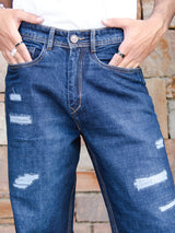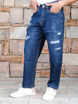 Dark Blue Ripped Baggy Fit Denim Jeans