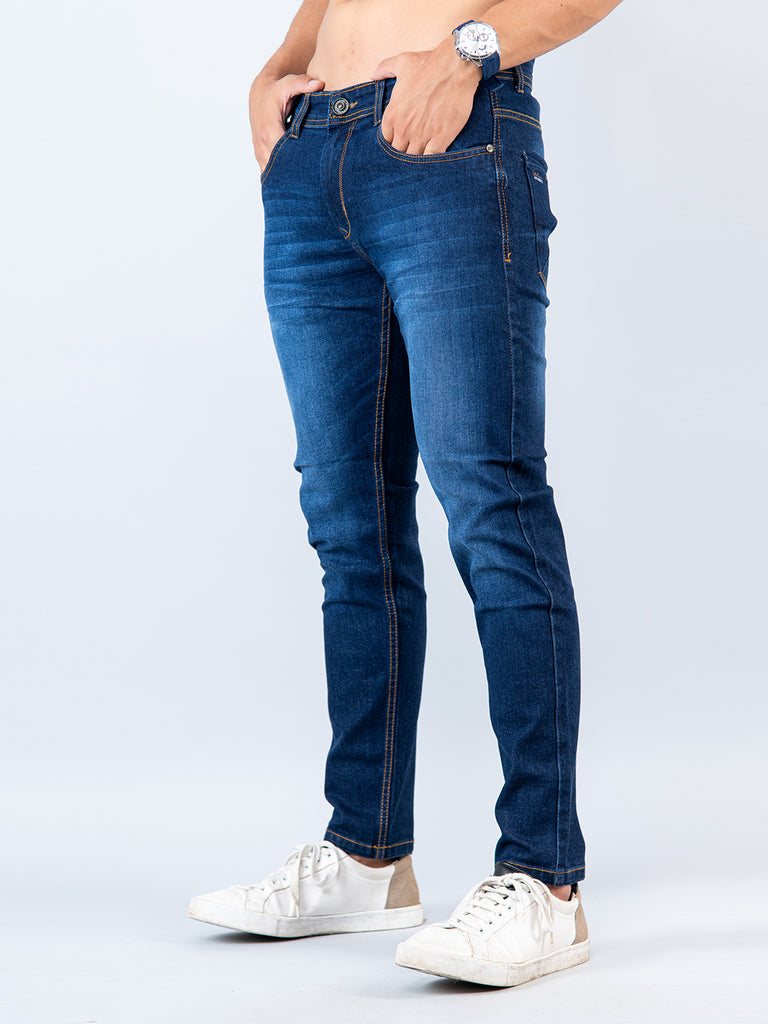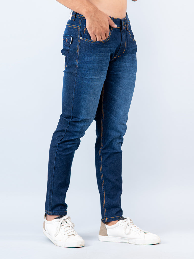 Explore modern style with our Dark Blue Skinny Ankle Fit Denim Jeans. Crafted from quality denim, it ensures a sleek and modern look.
