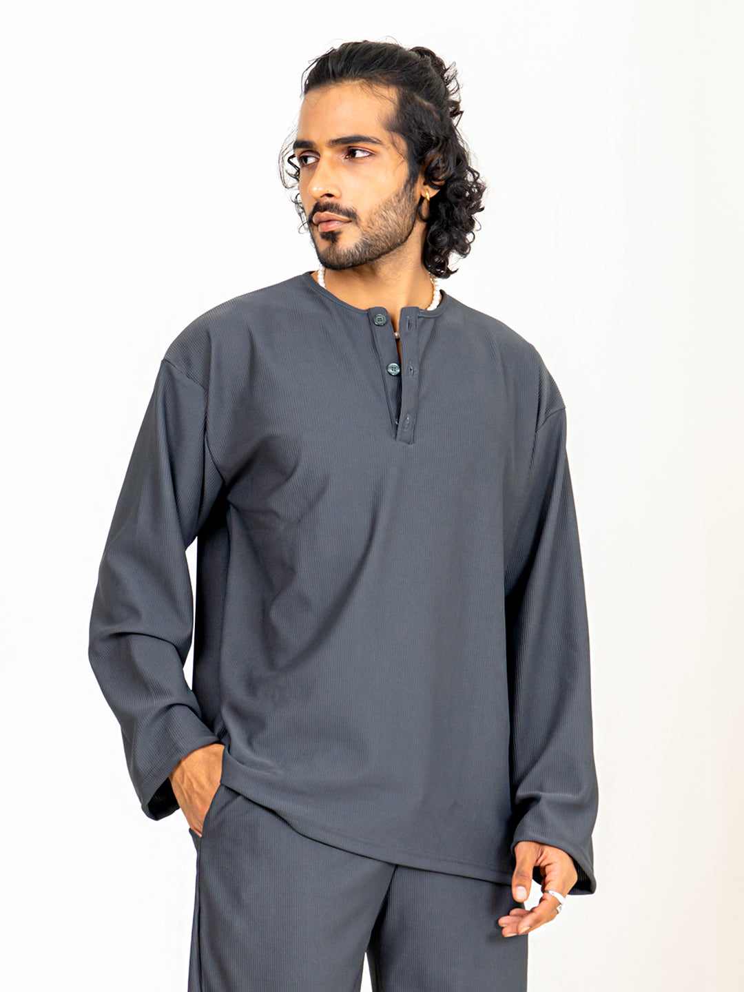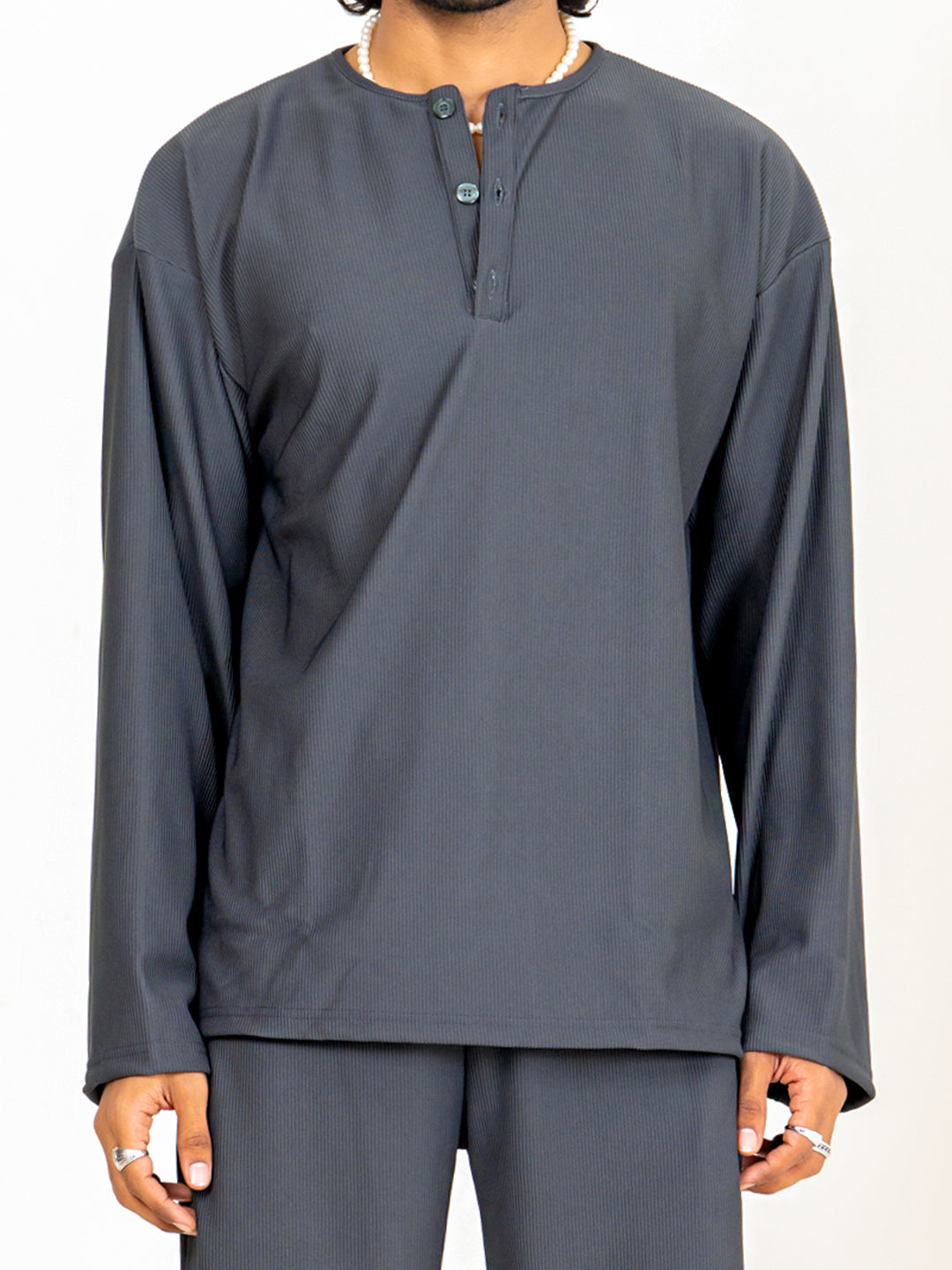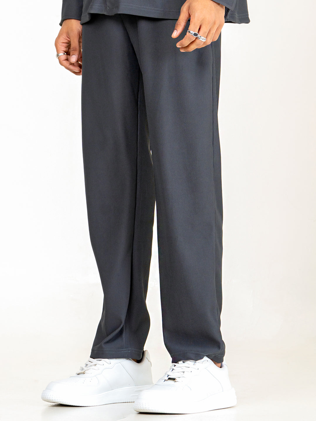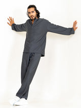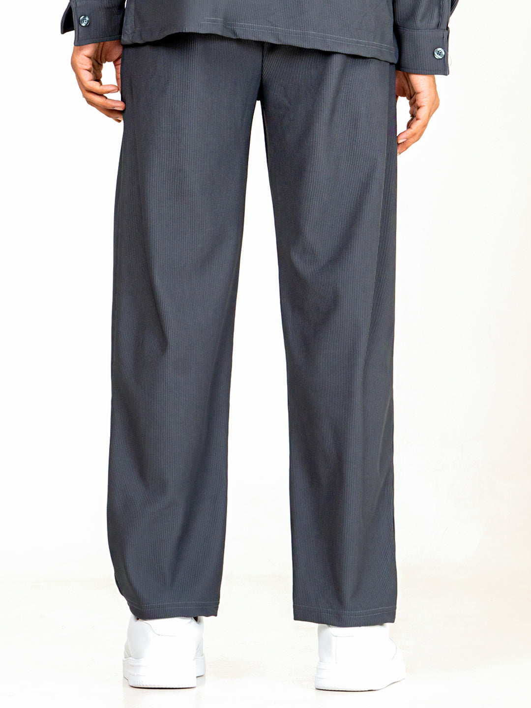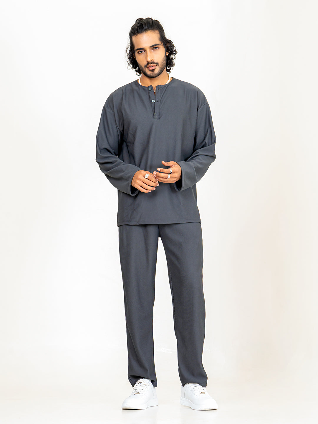 The Dark Gray T-Shirt and Pants Co-ord Set combines comfort and urban style in a cool corduroy fabric. Its understated dark gray tone is ideal for a modern, casual look.
