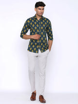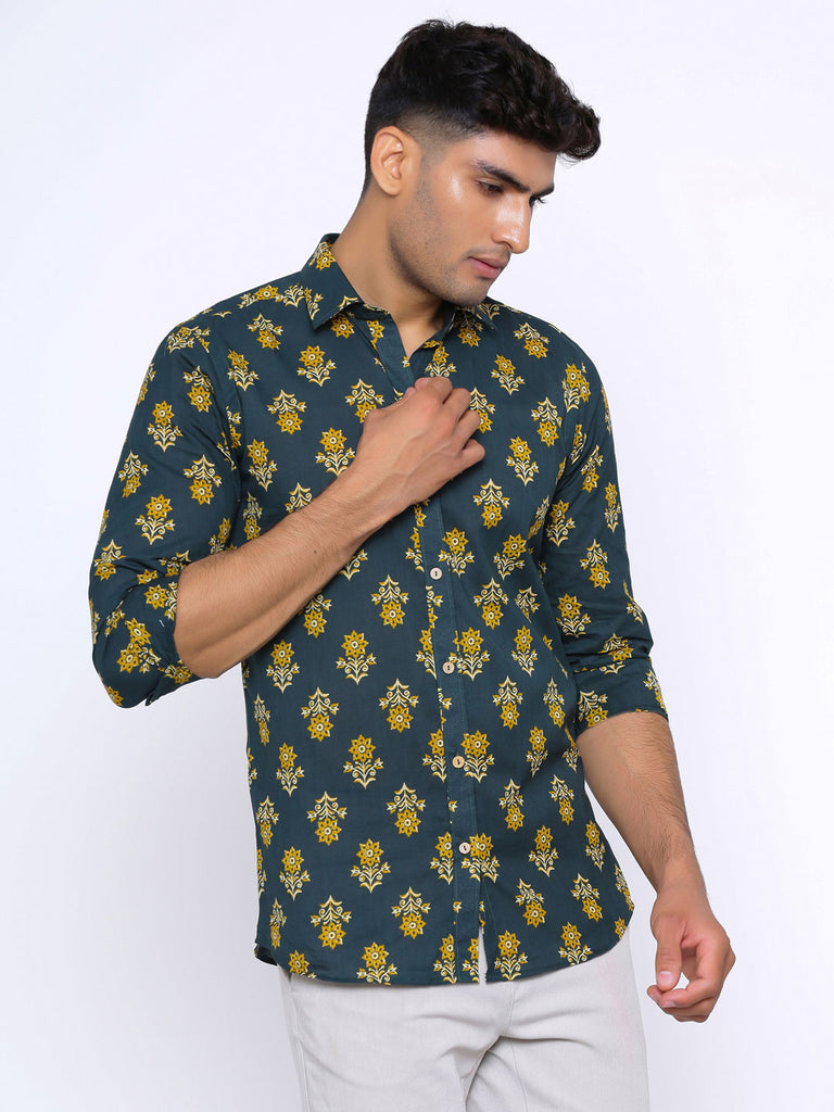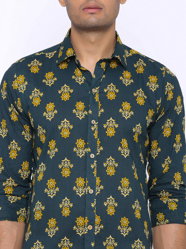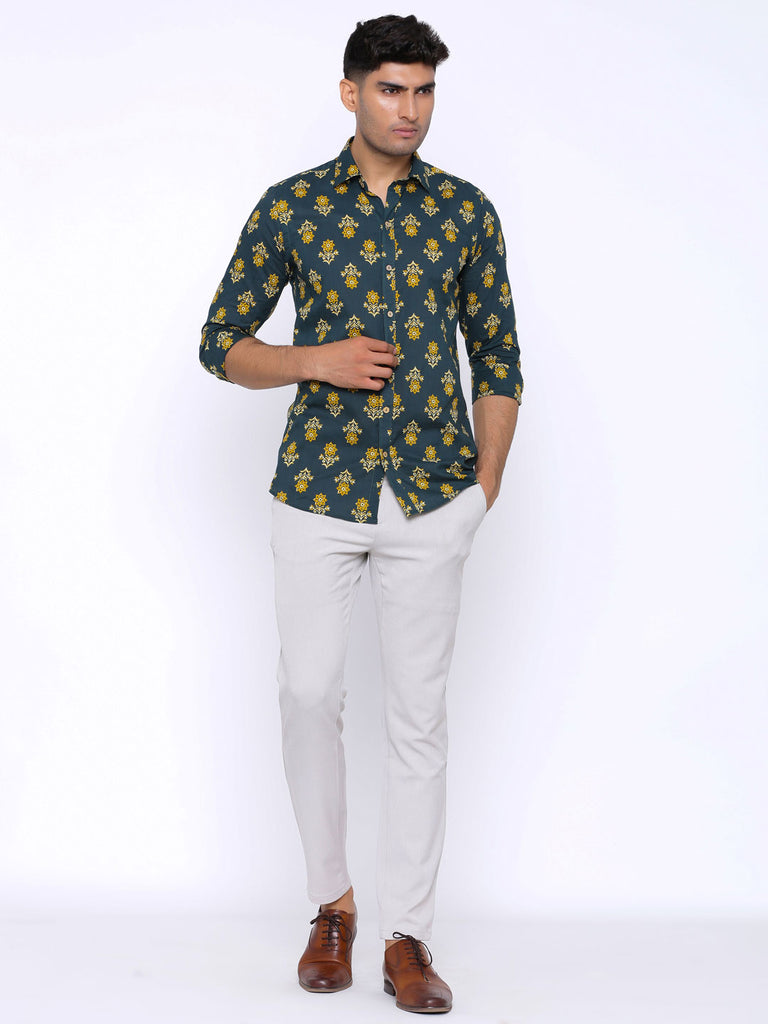 About the product: This Dark Green and Yellow Printed Cotton Shirt is made to make you look smart and handsome. This shirt is so comfortable yet so stylish.