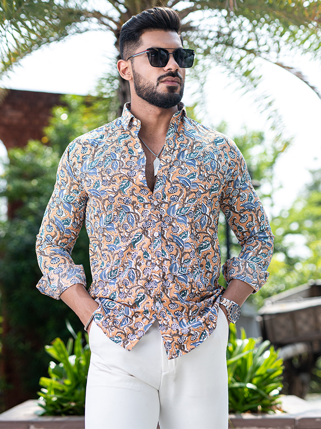 About the product- Explore the collection of beautifully designed shirts from Tistabene. This Dark Peach Chintz Printed Full Sleeves Crepe Shirt is your wardrobe essential and makes you look trendy!