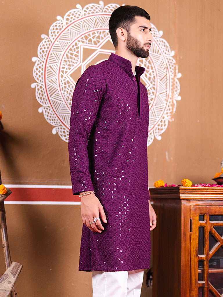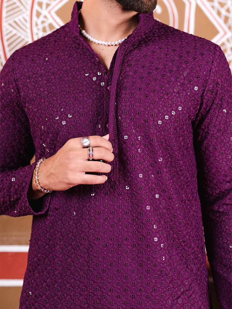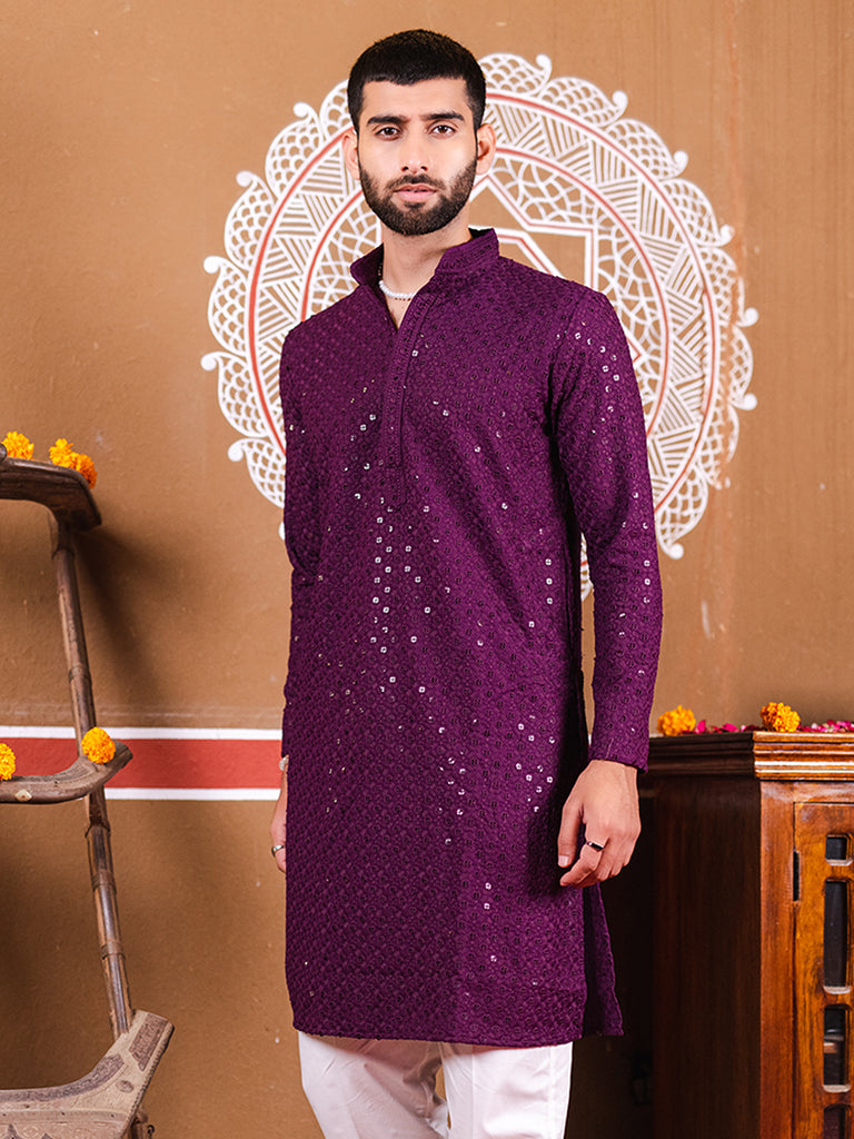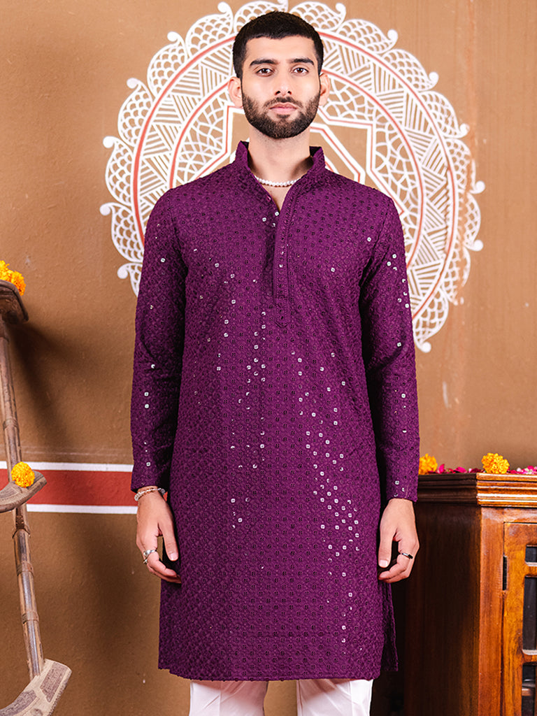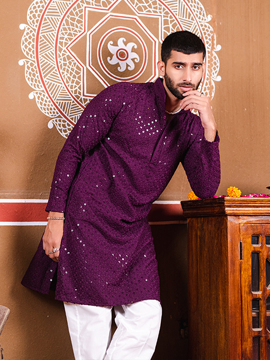 The Dark Purple Rayon Sequence Embroidered Cotton Men's kurta is the perfect kurta for weddings and traditional parties to help you stand out from the crowd.