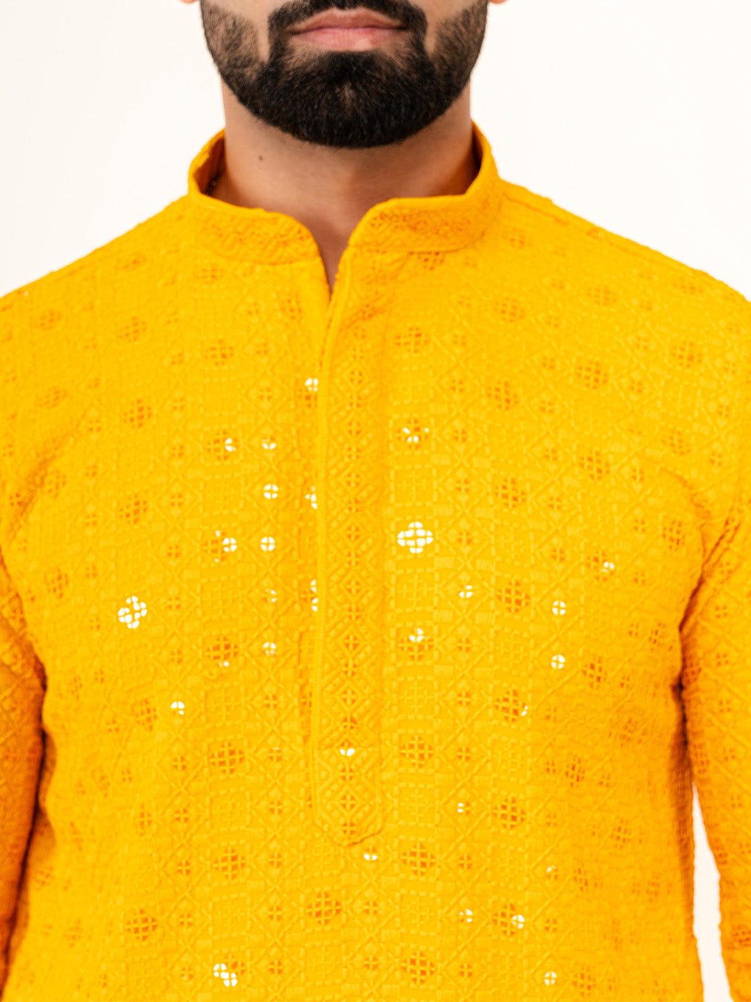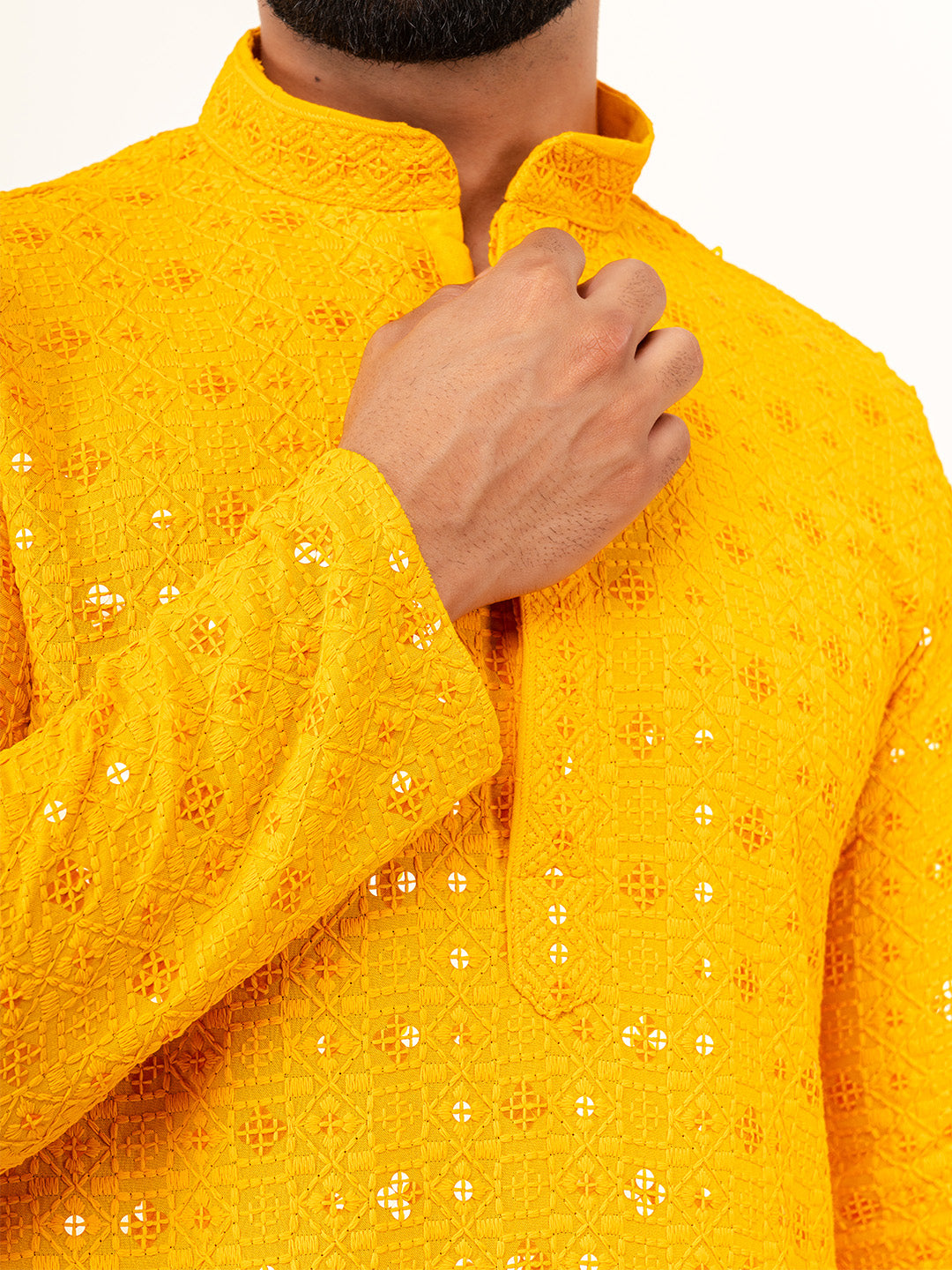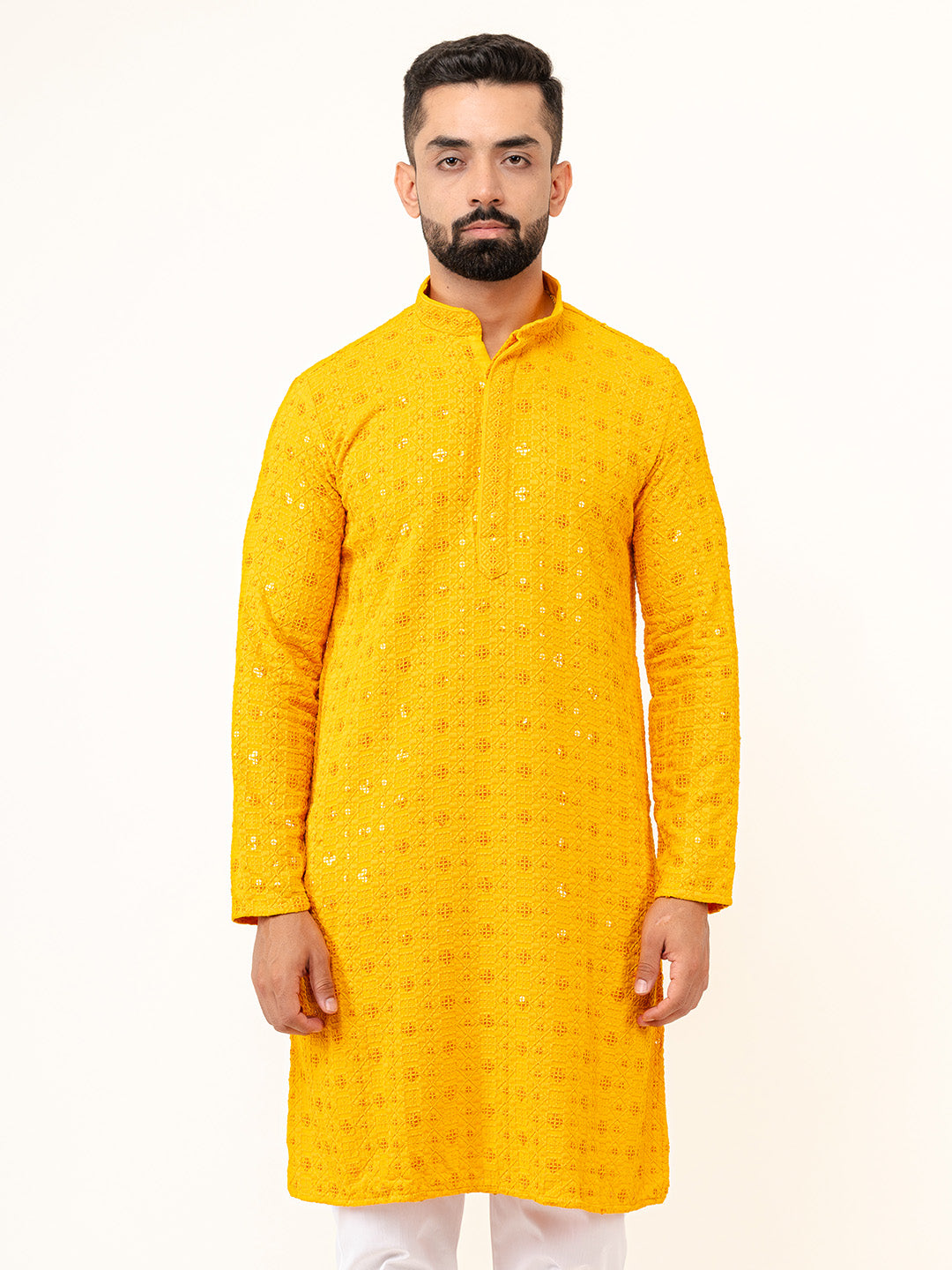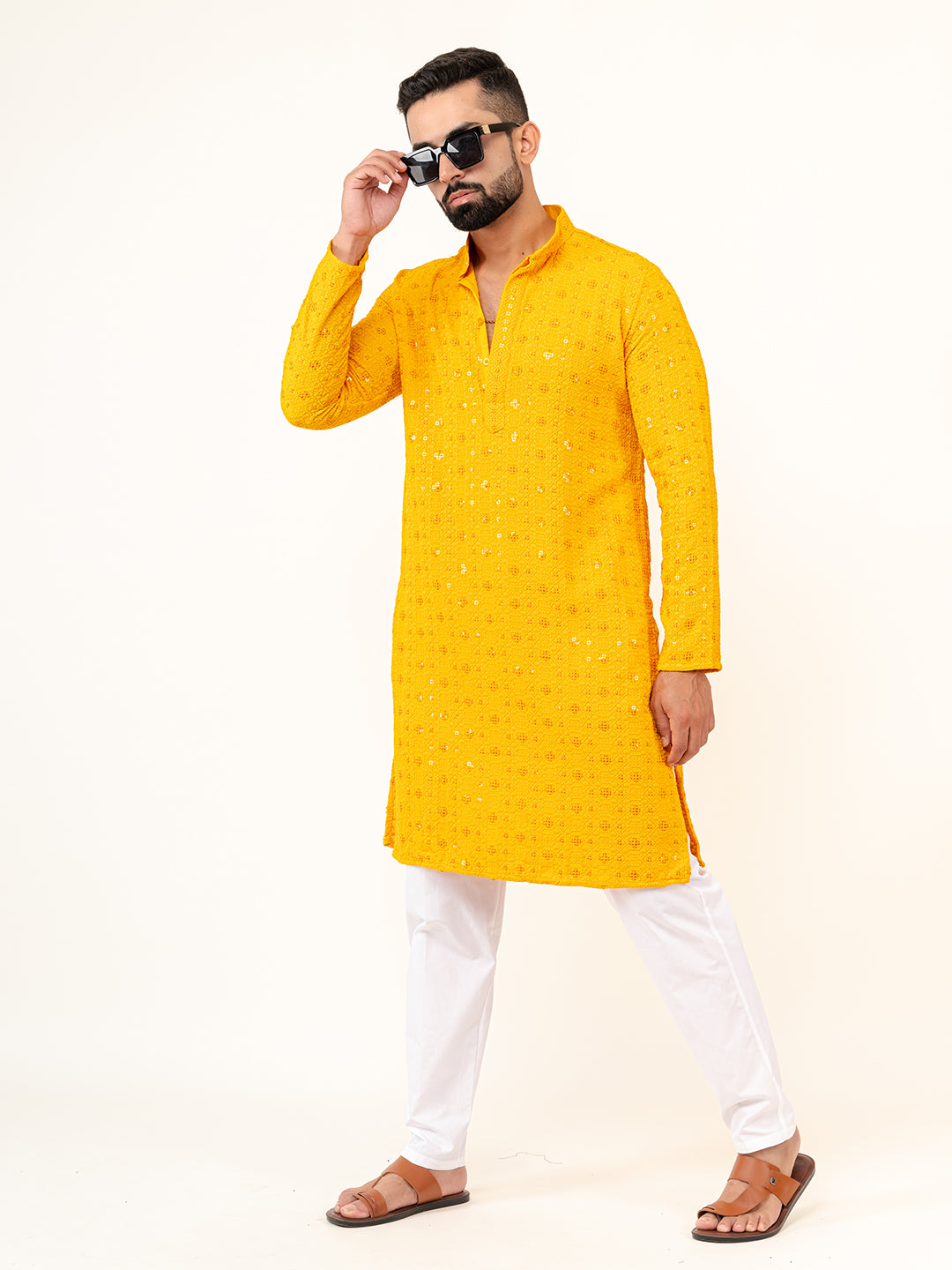 About the Product: The Dark Yellow Designer Cotton Embroidered Kurta for Men is a perfect blend of style and comfort. Featuring exquisite embroidery, this kurta stands out for any special occasion.