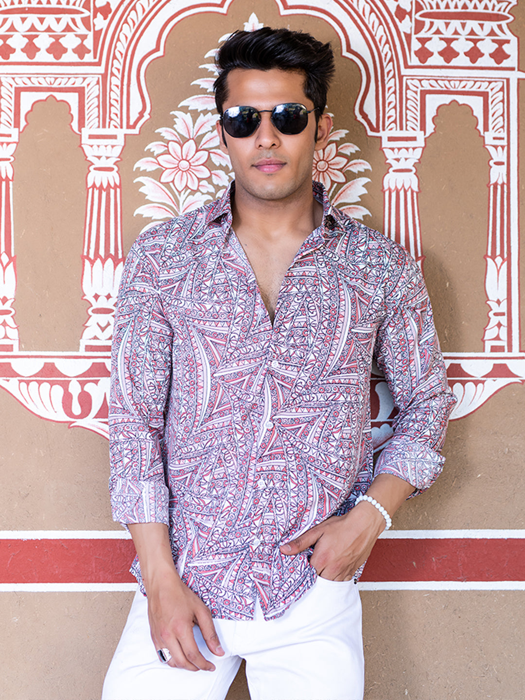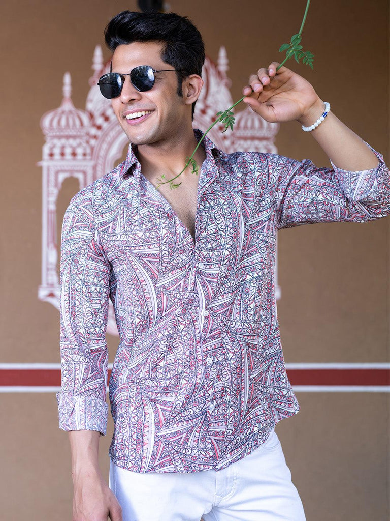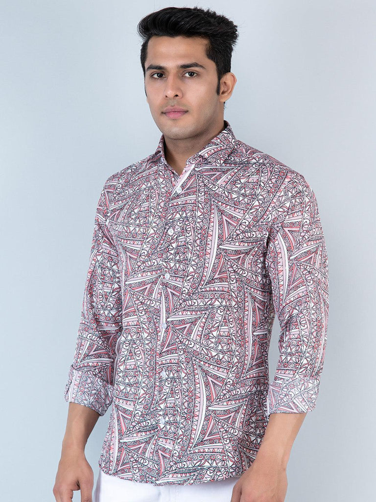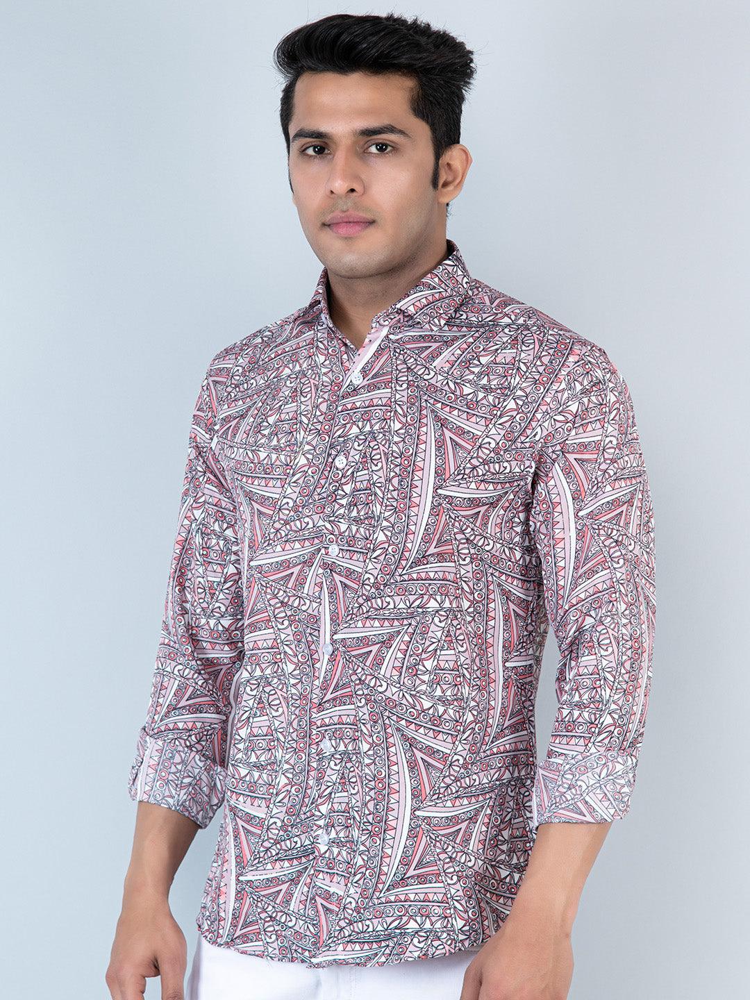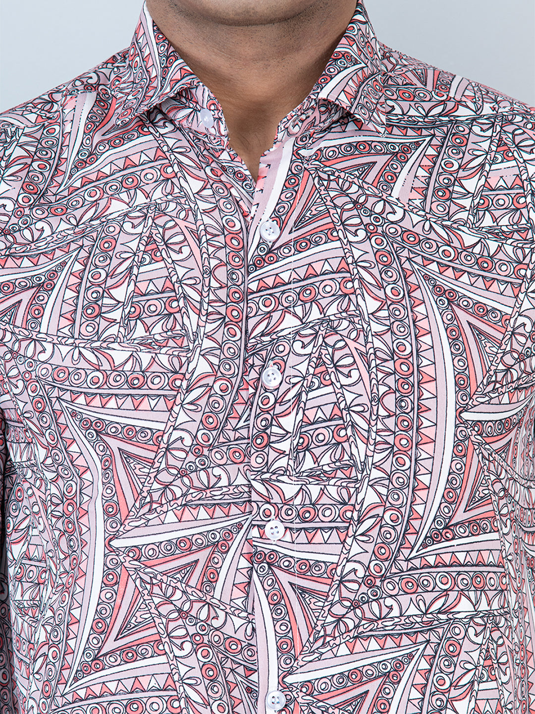 About the product- This Dusty Rose Polynesian Tribal Printed Full Sleeves Crepe Shirt is made to make you look smart, this comfortable shirt is your wardrobe essential which gives a stunning look while wearing.