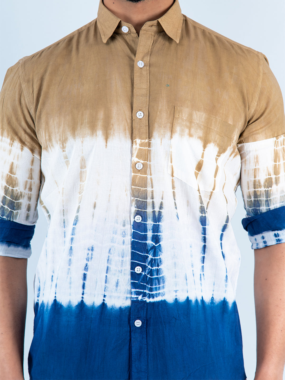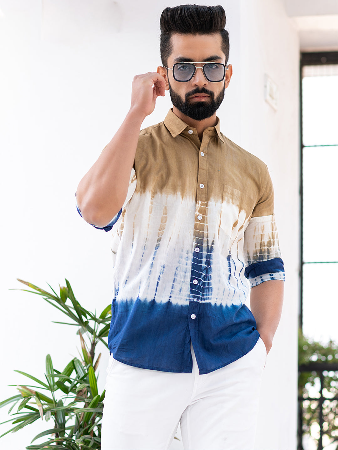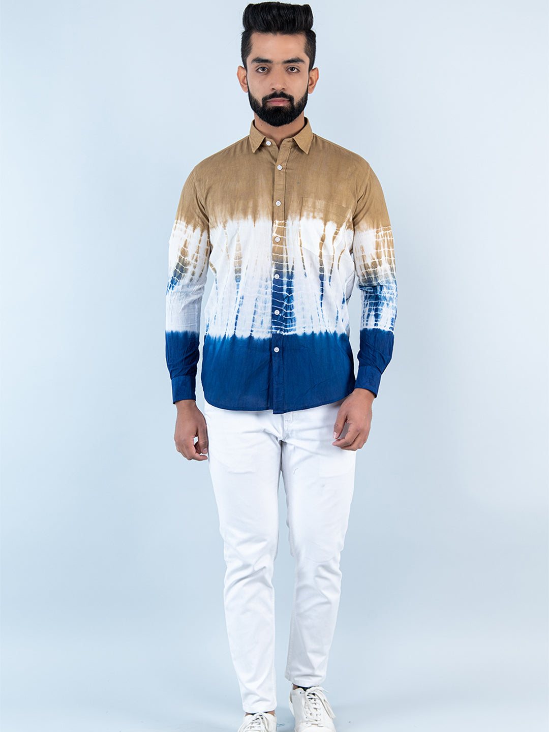 Enjoy The Casual Smart Look By Wearing Brown Tie And Dye Full Sleeves Cotton Shirt Made To Refresh Your Wardrobe.
