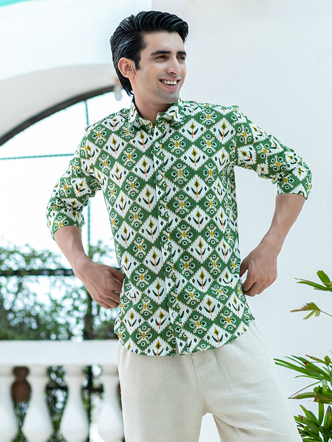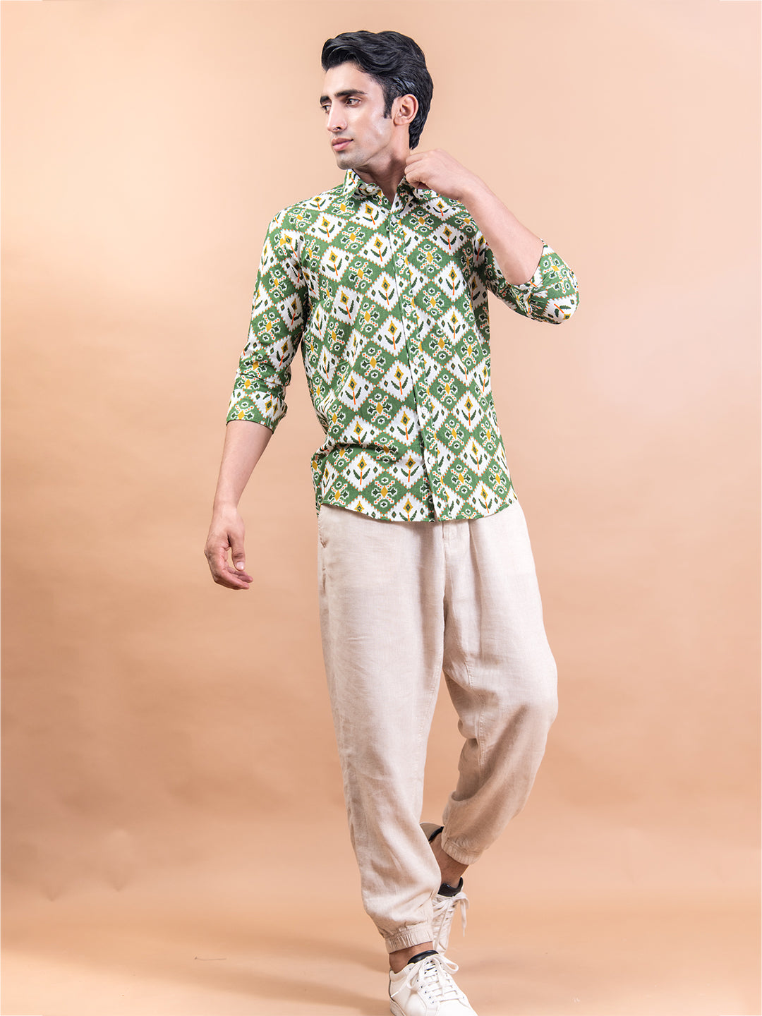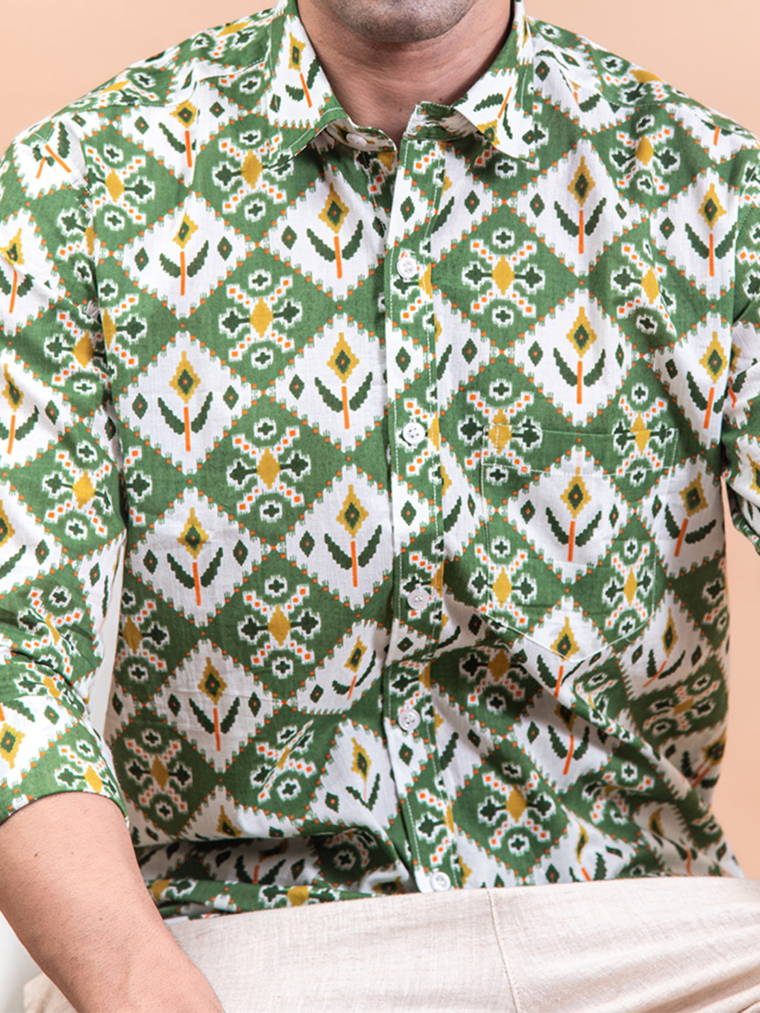 About the product: This green abstract full sleeves cotton shirt is made to make you look stunning. This shirt is a must in your wardrobe.