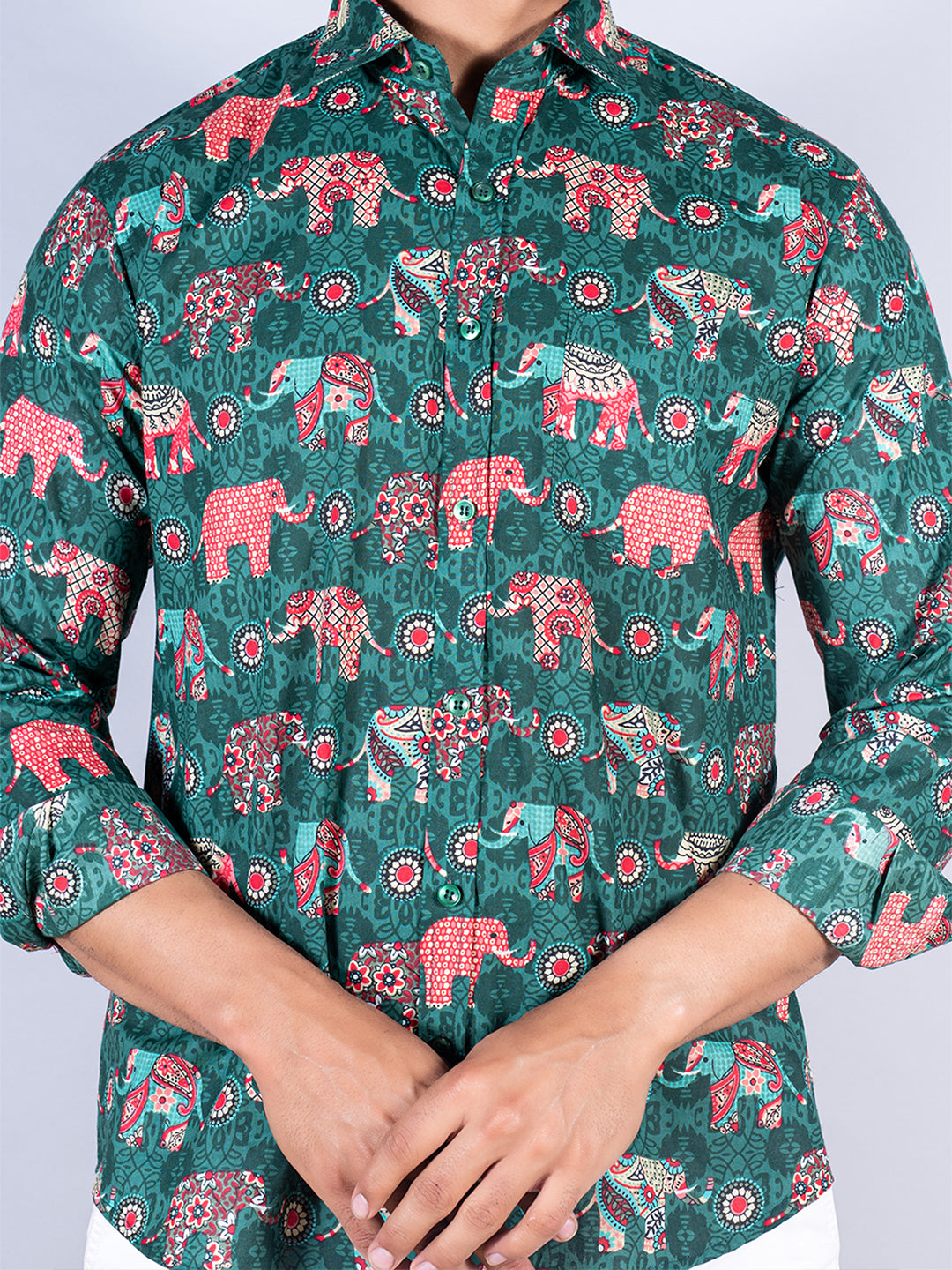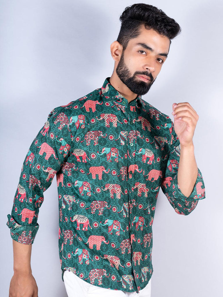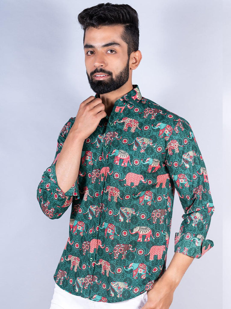 About the product: This green elephant paisley printed full sleeves cotton shirt is made to make you look smart. This comfortable shirt is a must inside your wardrobe.