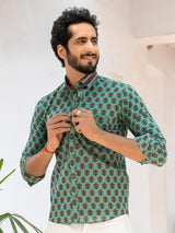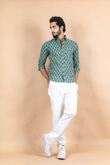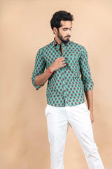 About the product- Green Jaipuri Printed Cotton Shirt for men. A shirt That is stitched with detailed precision and printed with an authentic design.