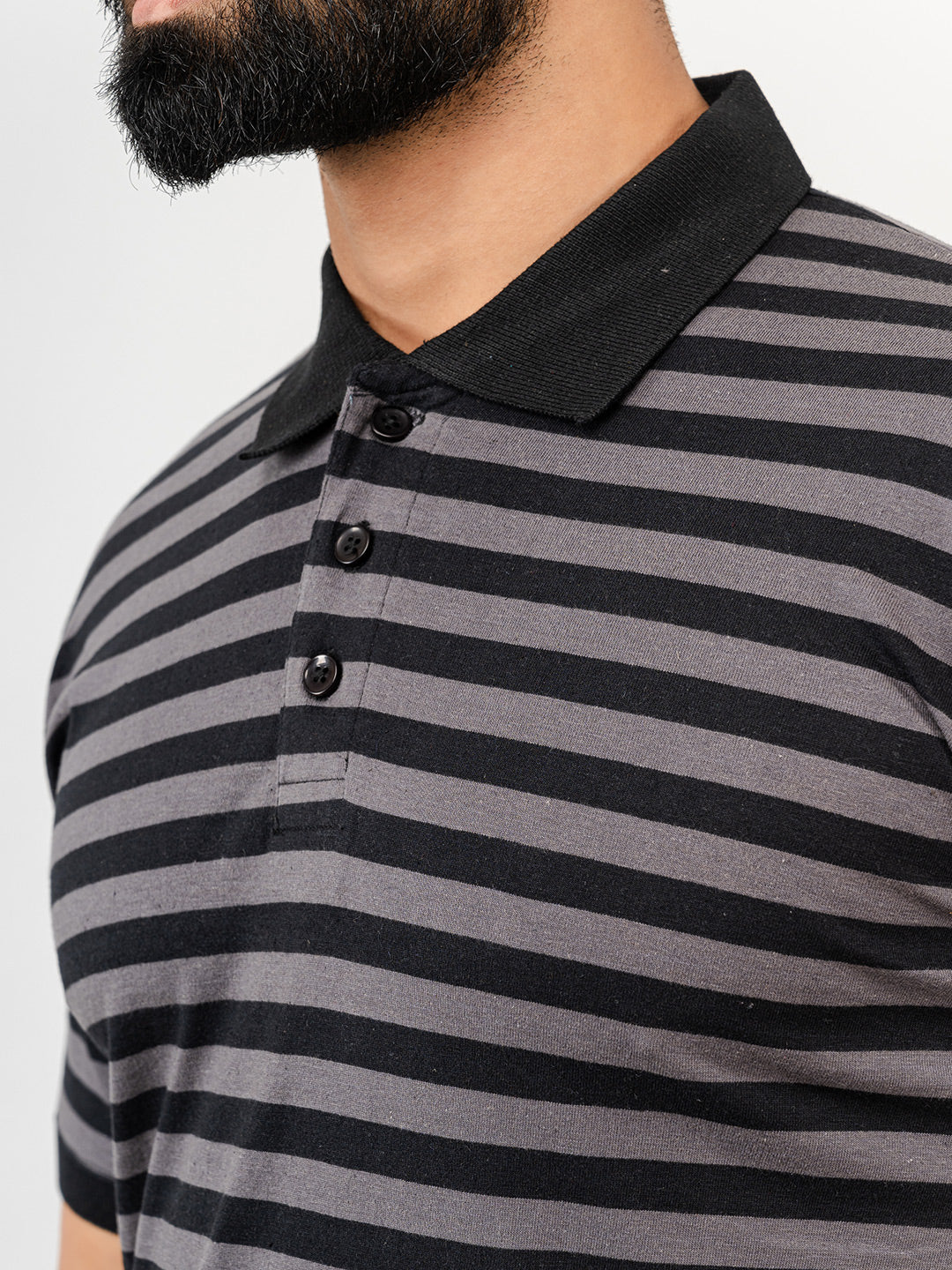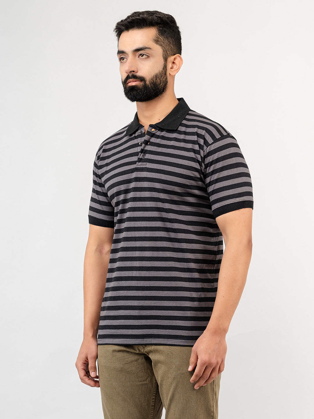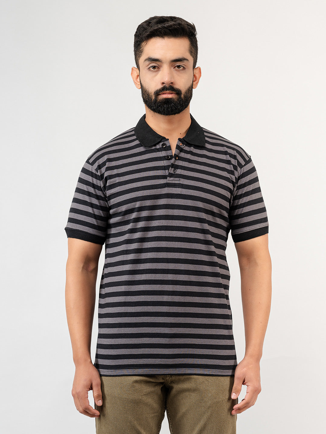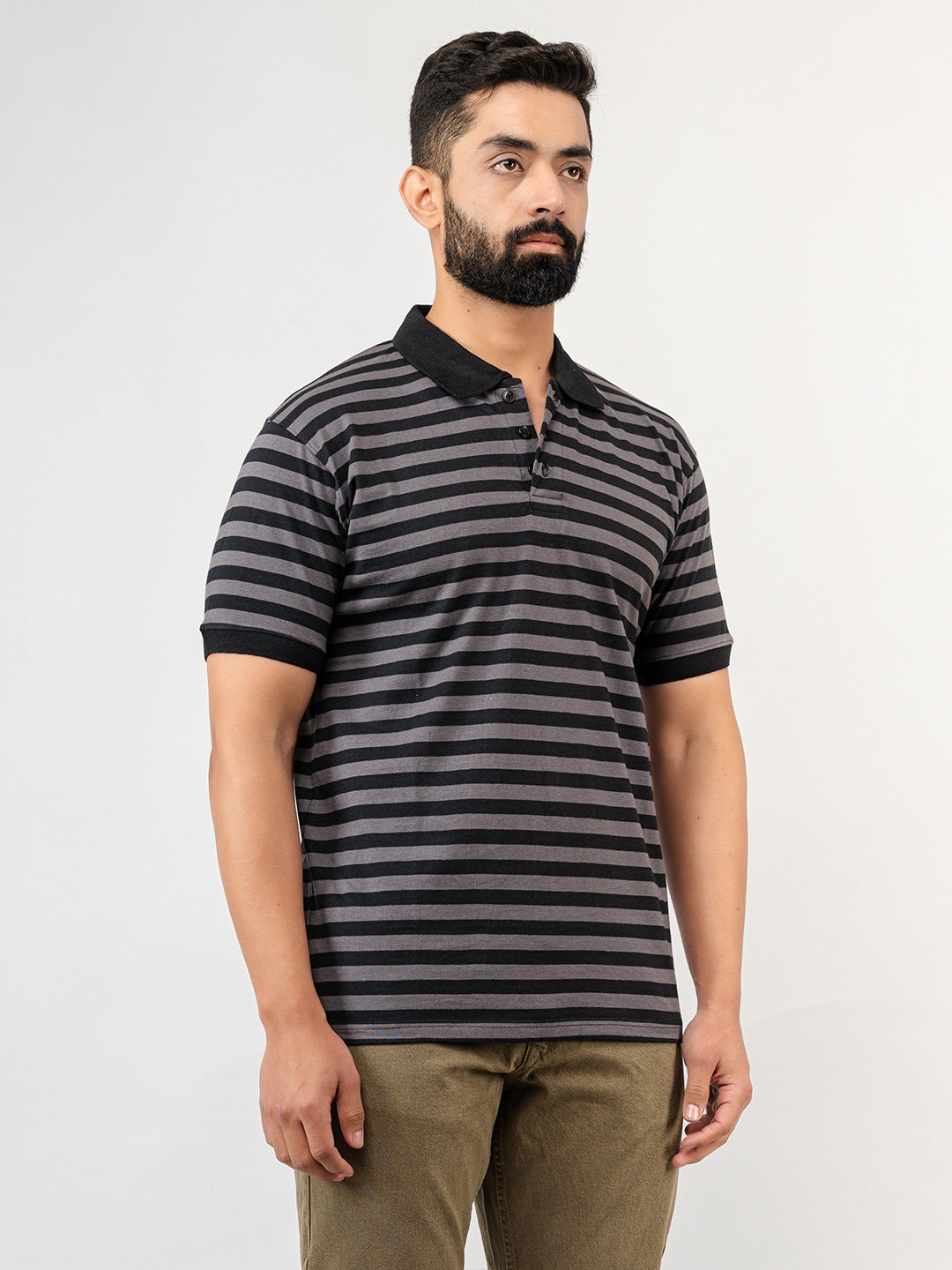About the product: This grey base black strips collar t-shirt from Tistabene is made to make you look stunning. This comfortable t-shirt is a must in your wardrobe.