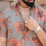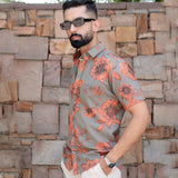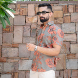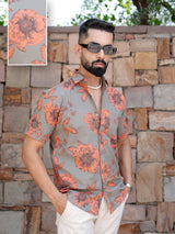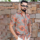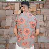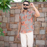 Grey Floral Half Sleeve Printed shirt