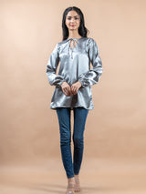 Elevate your ensemble with the Grey Satin Full Sleeves Top For Women. The full sleeves add a chic and modest touch, making it suitable for both casual and more formal occasions. Pair it with your favorite bottoms and accessories for a stylish and trendy look.