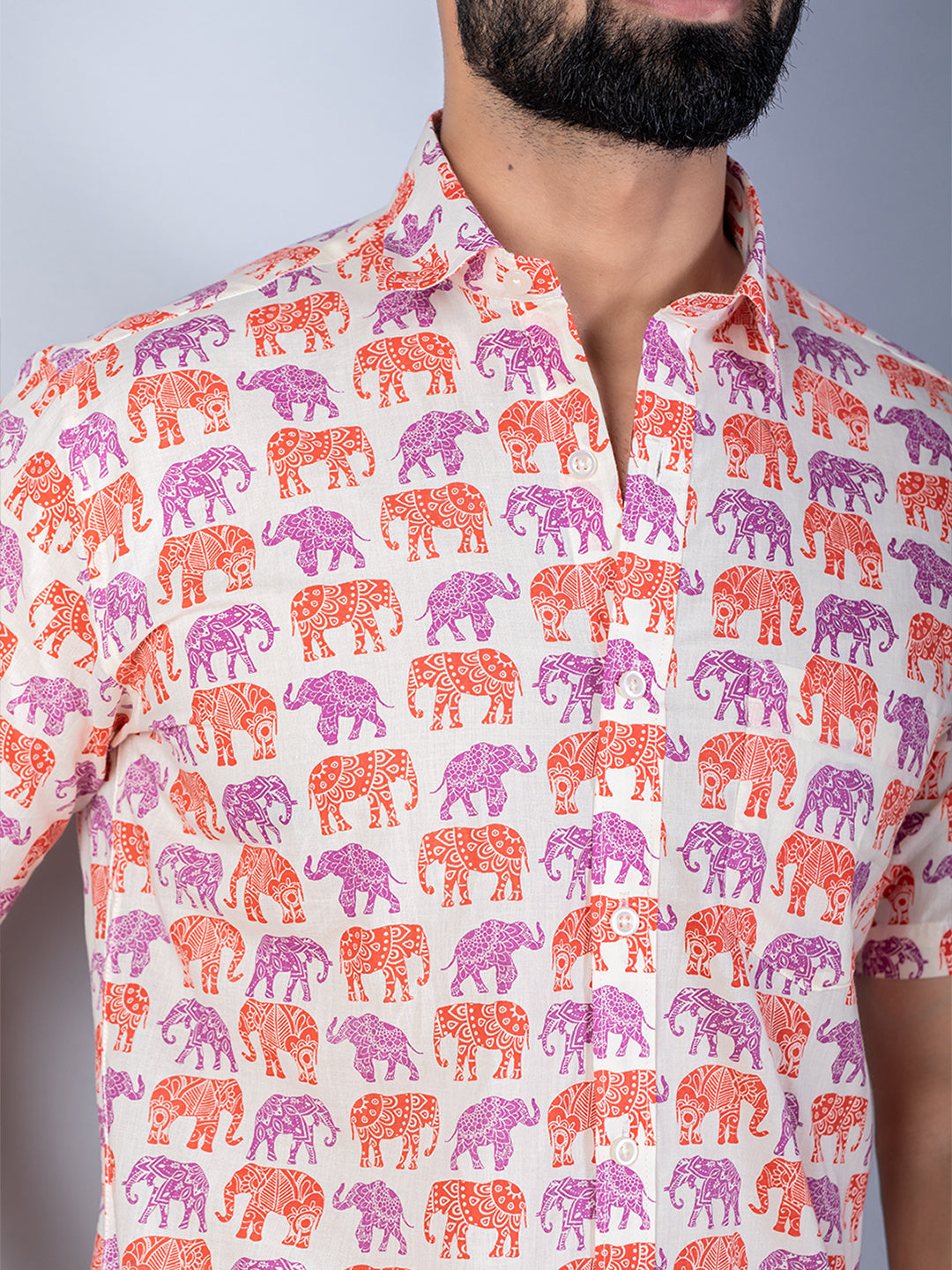 About the product: This multicolor elephant printed half sleeves cotton shirt is made to make you look smart. This comfortable shirt is a must inside your wardrobe.