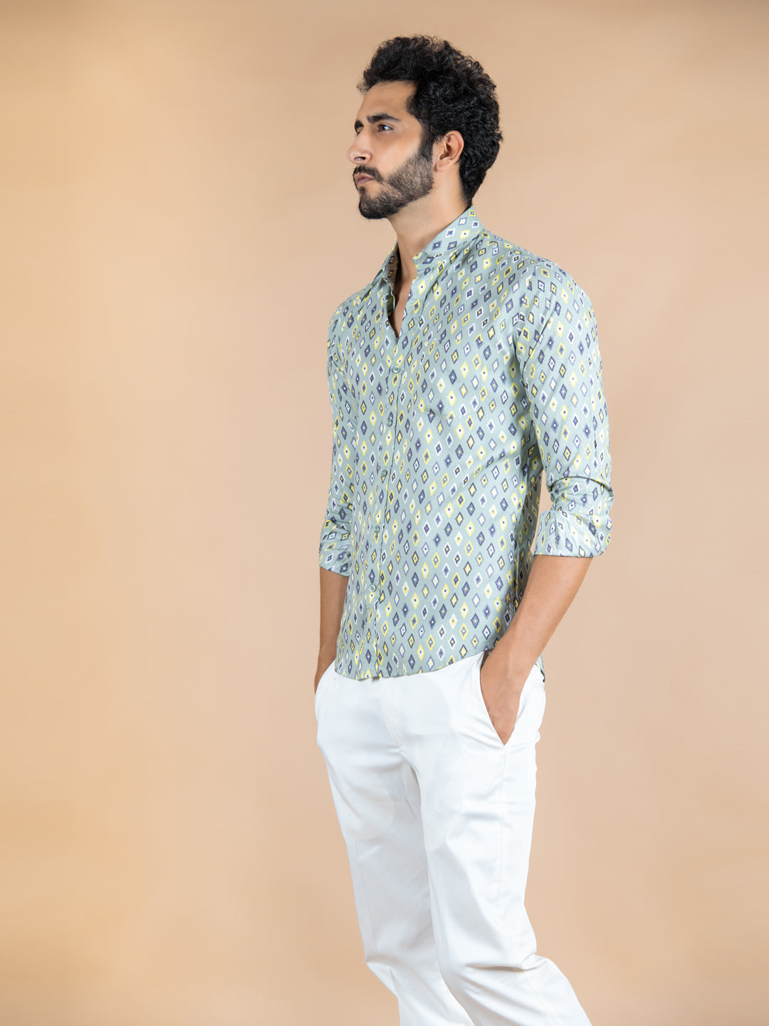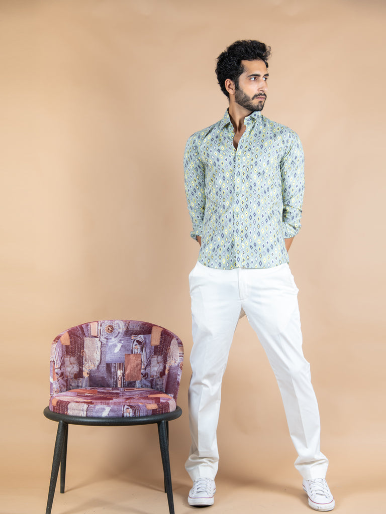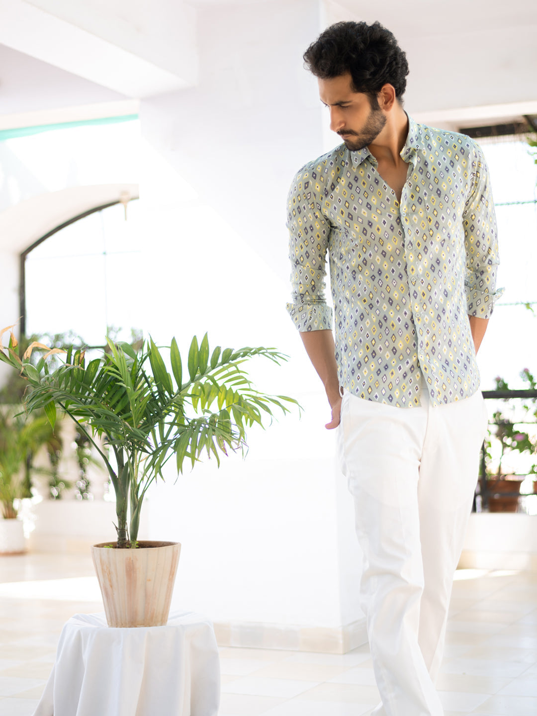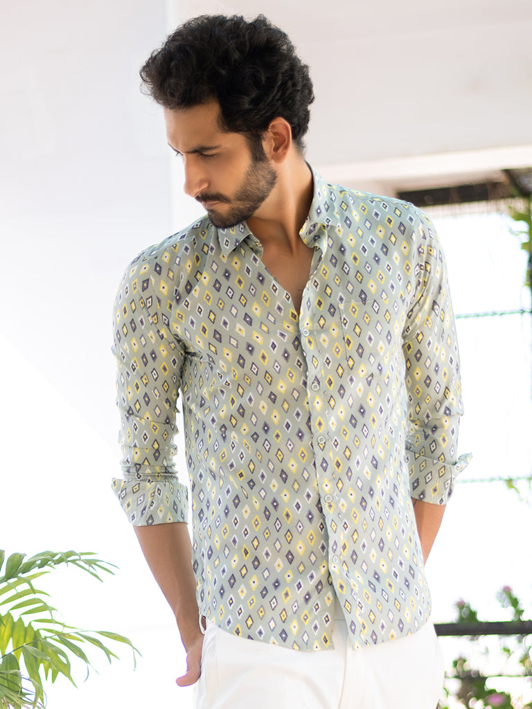 About the product: This Ikat Printed Giza Cotton Shirt is made to make you look smart and handsome. This shirt is so comfortable yet so stylish.