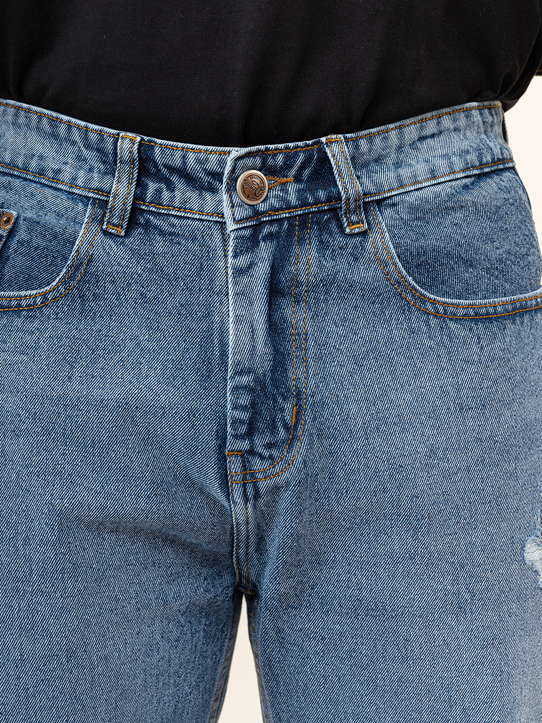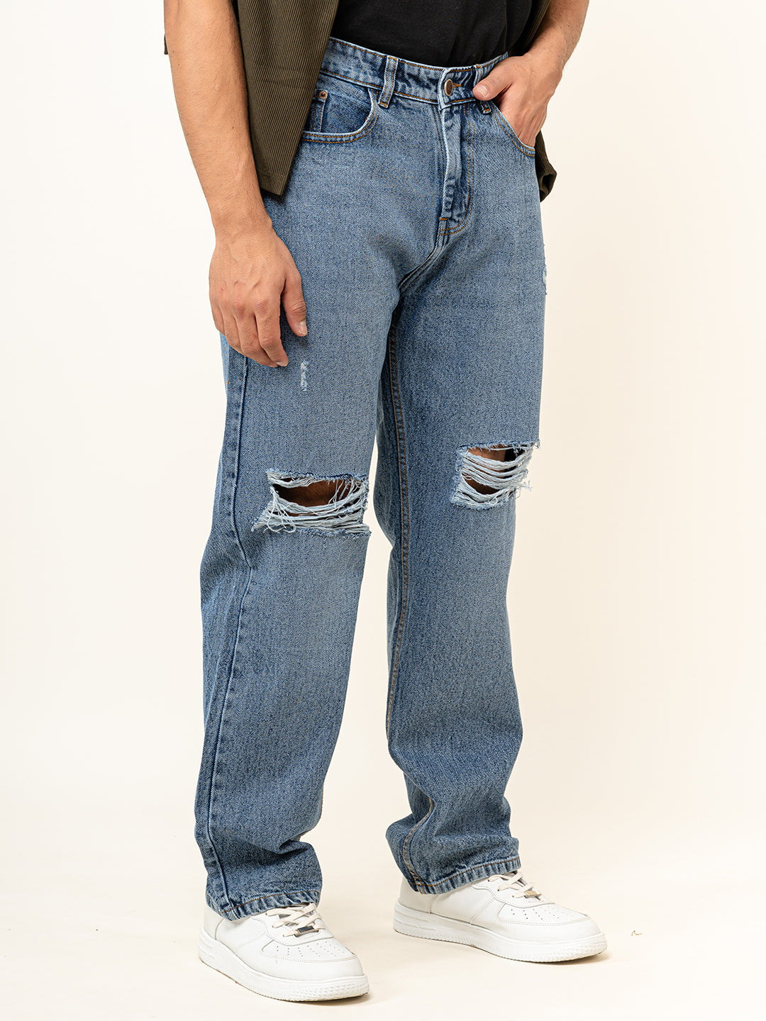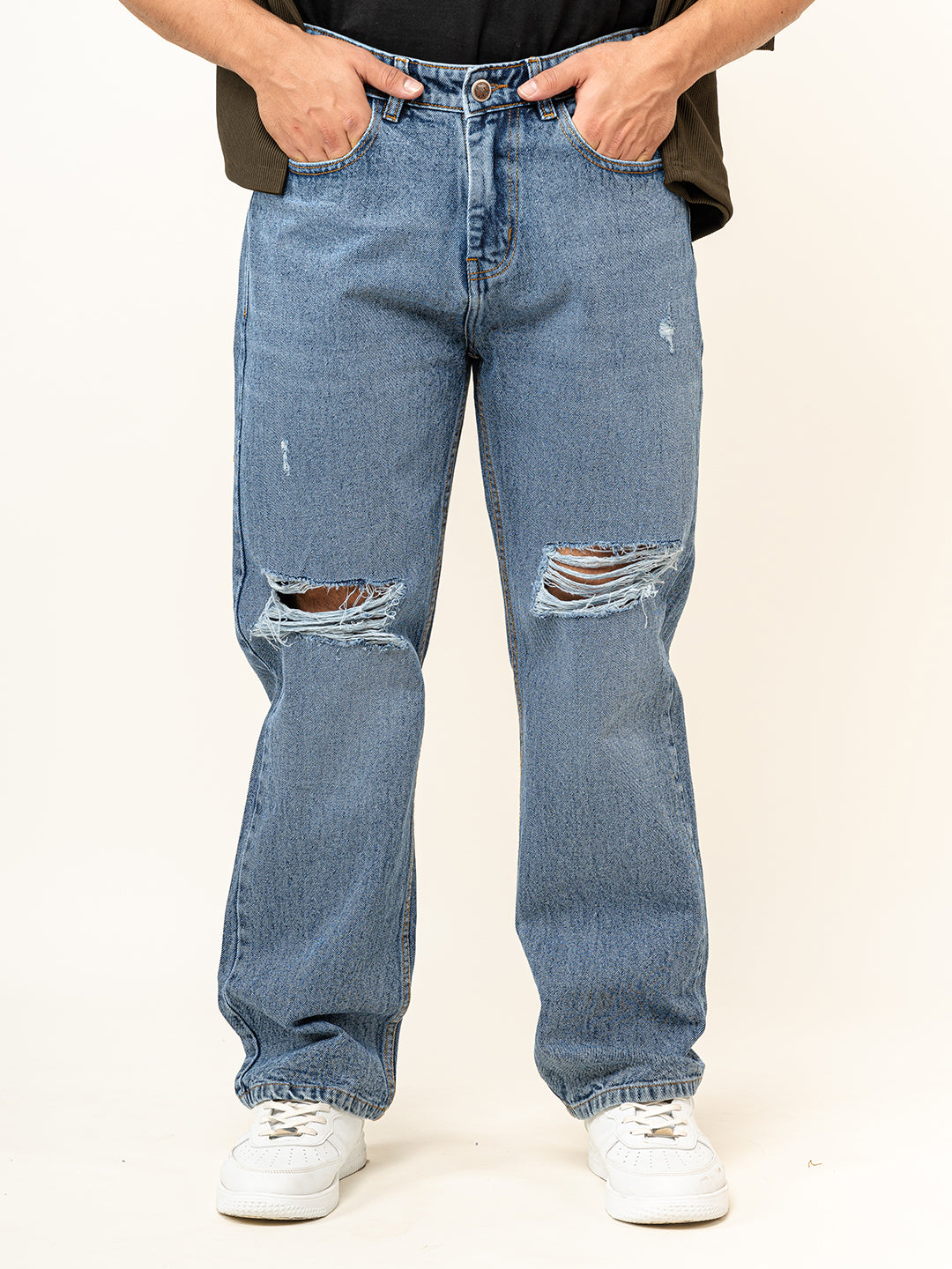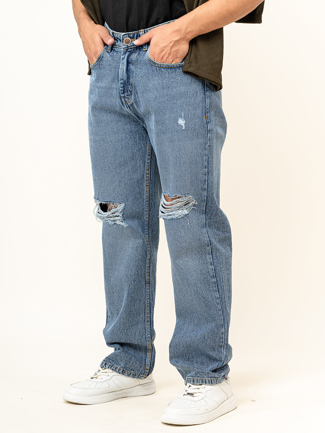 These Indigo Knee Cut Baggy Denim jeans are a must-have for those who love comfort and style. Designed with a relaxed fit, they offer a laid-back vibe with timeless appeal.