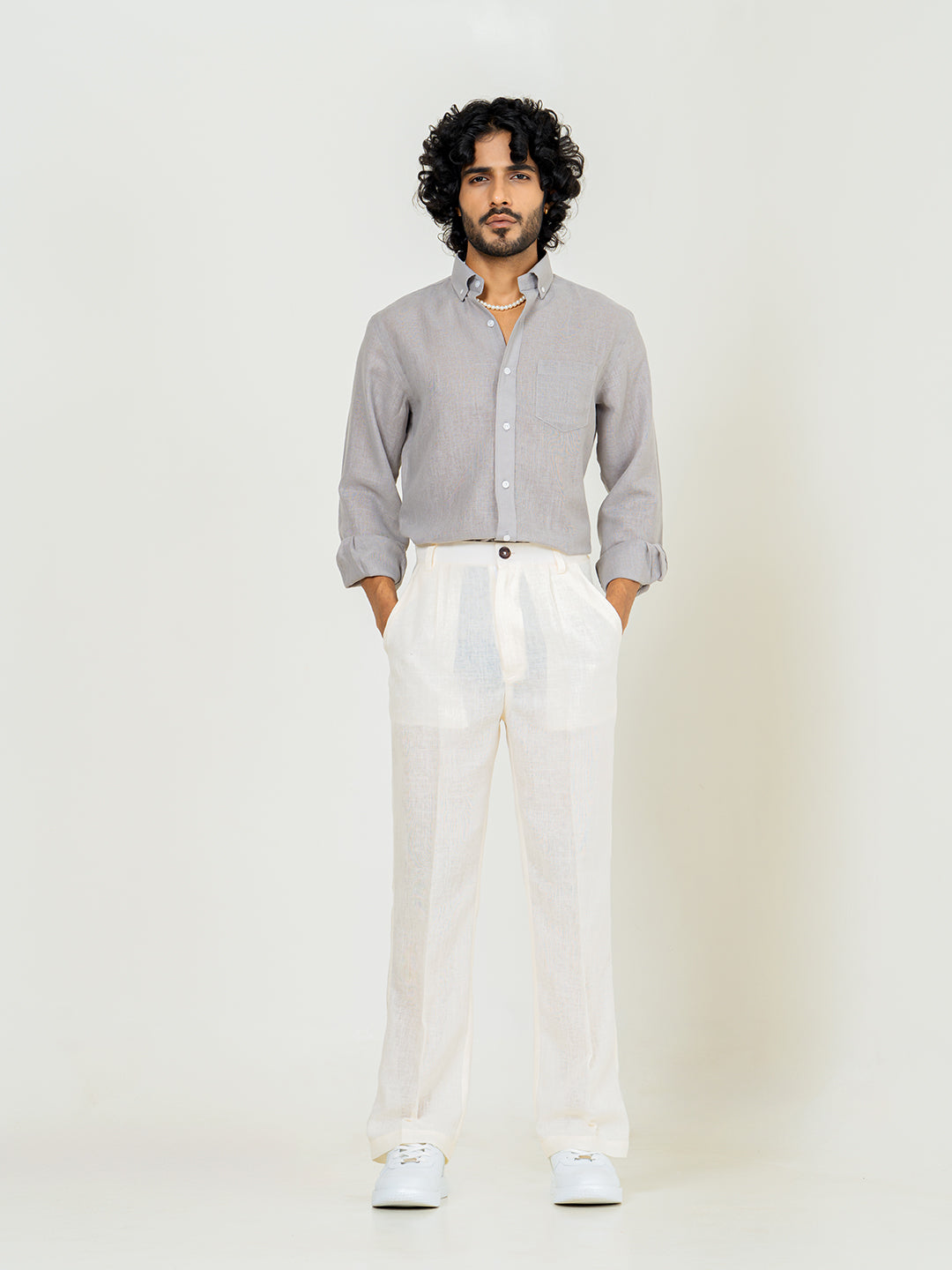 Team it with dark denim for a smart-casual look. You can also pair it with olive green pants for a more earthy feel. Add a leather belt and boots for a sharp finish.