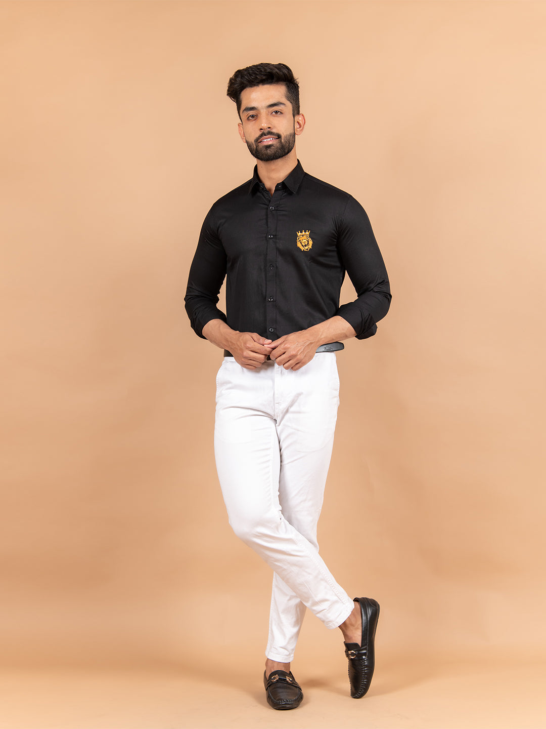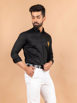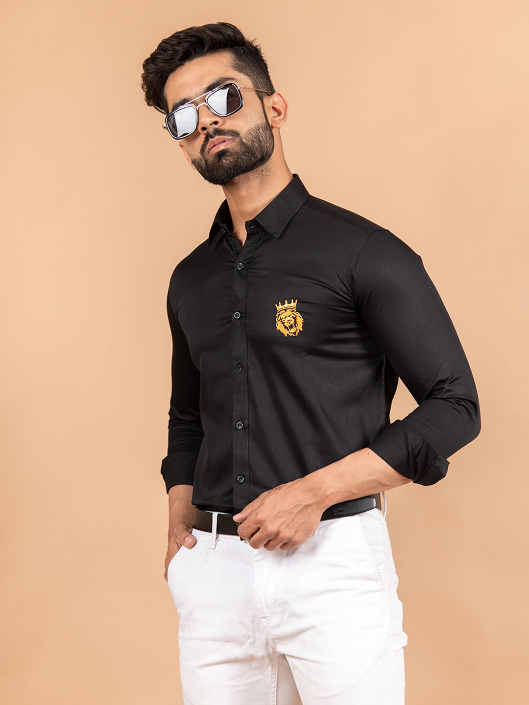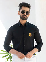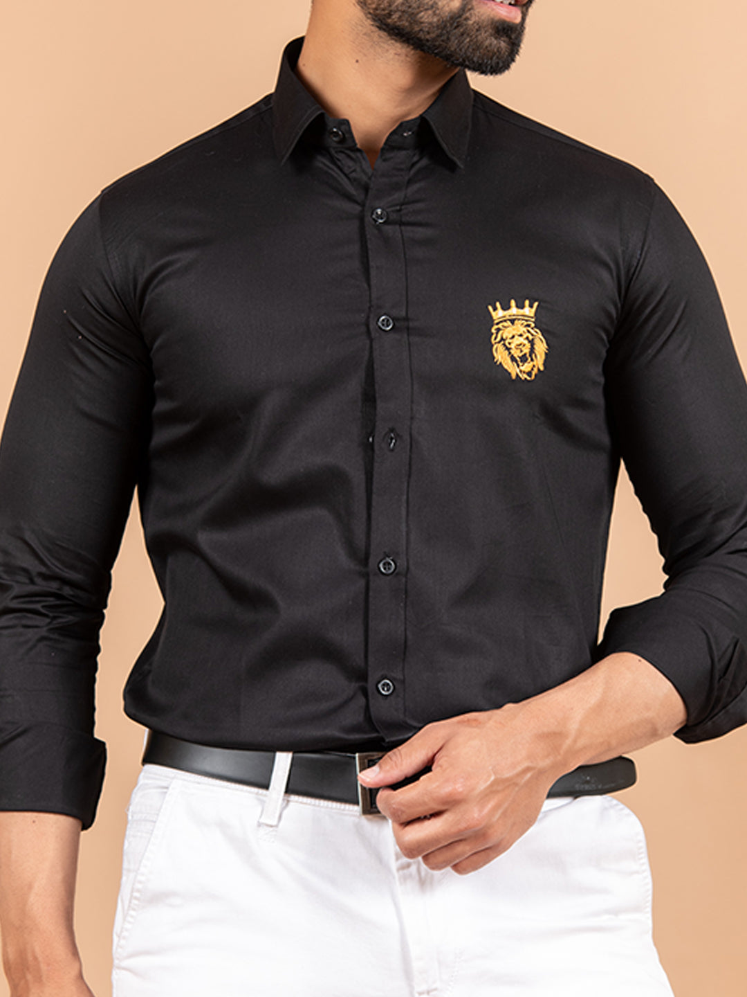 About The Product- Leo Embroidered Black Giza Cotton Shirt Made To Make You Look Good Effortlessly, Wear Them On Any Day, In Any Mood, You Will Surely Feel Good As You Look!