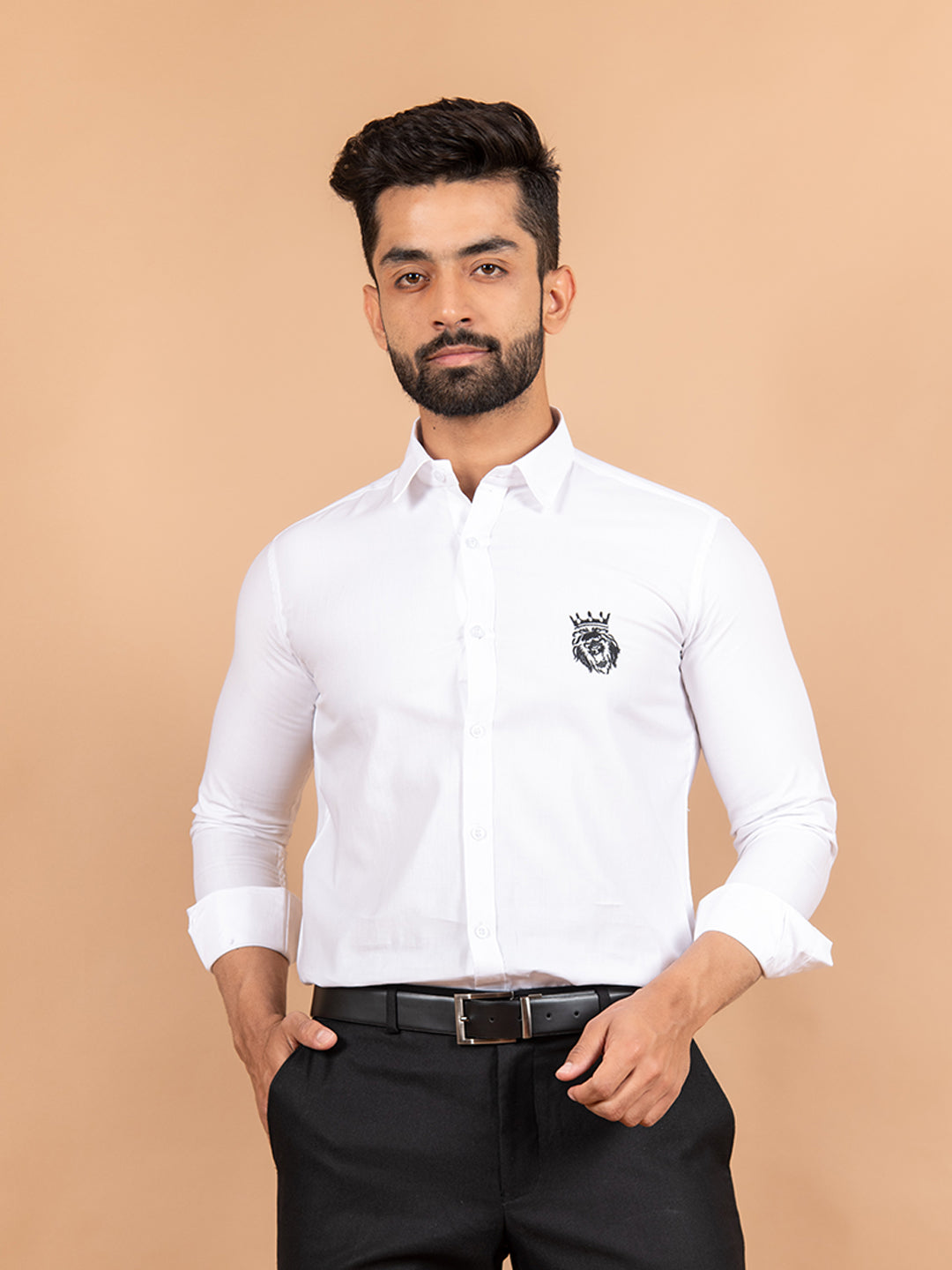 About the product- This Leo Embroidered White Giza Cotton Shirt is designed uniquely just to make you look amazing and is your wardrobe essential.