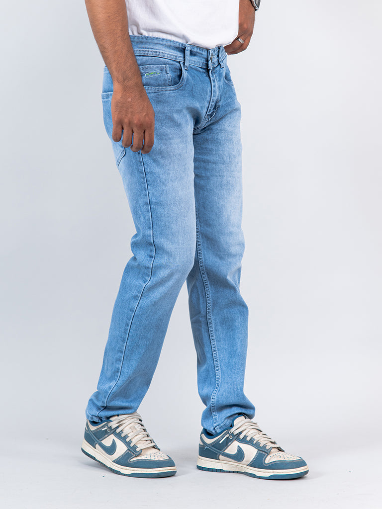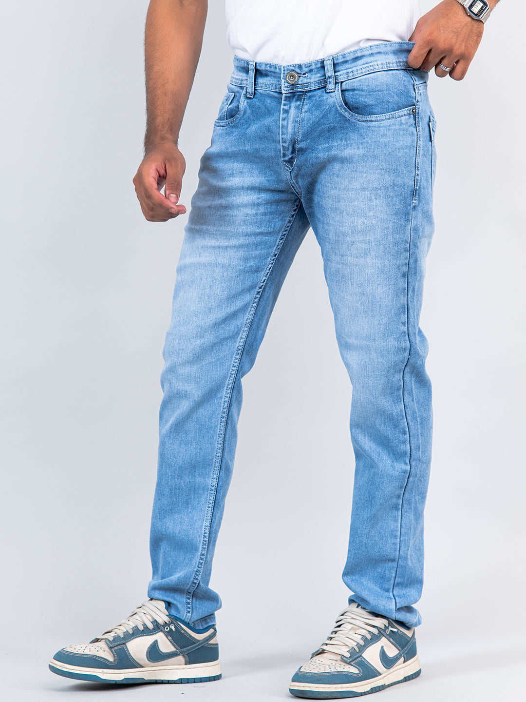 About Product- These sky light blue ankle fit denim jeans offer a fresh and contemporary look. Made from premium denim, they provide a comfortable fit that ends at the ankle for a modern style.