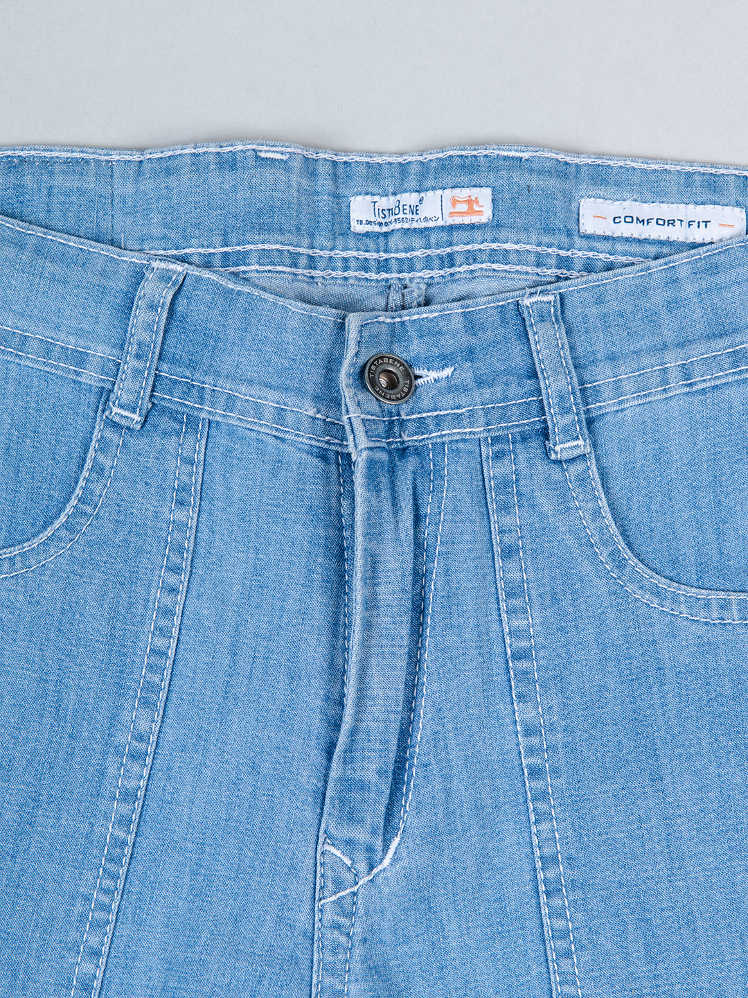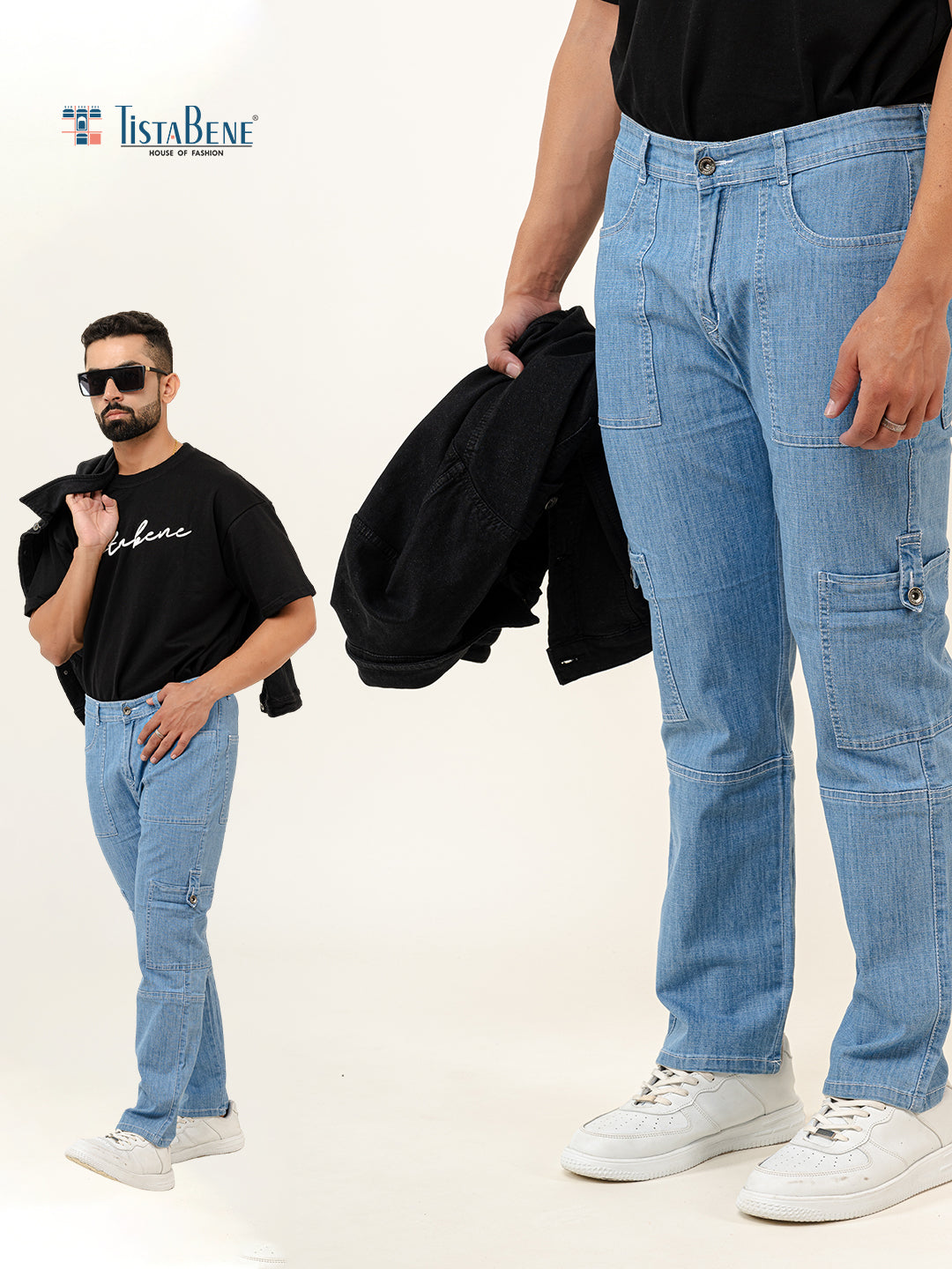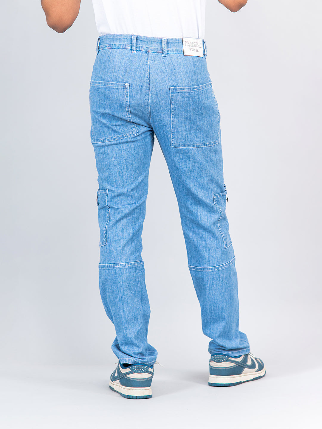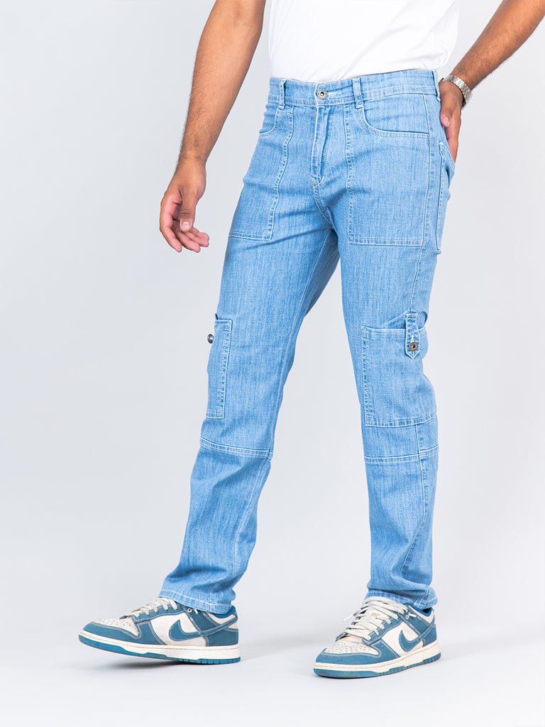 Experience relaxed style with our Light Blue Comfort-Fit Cargo Denim Jeans. Crafted for comfort, these jeans feature cargo pockets for a casual and laid-back look.