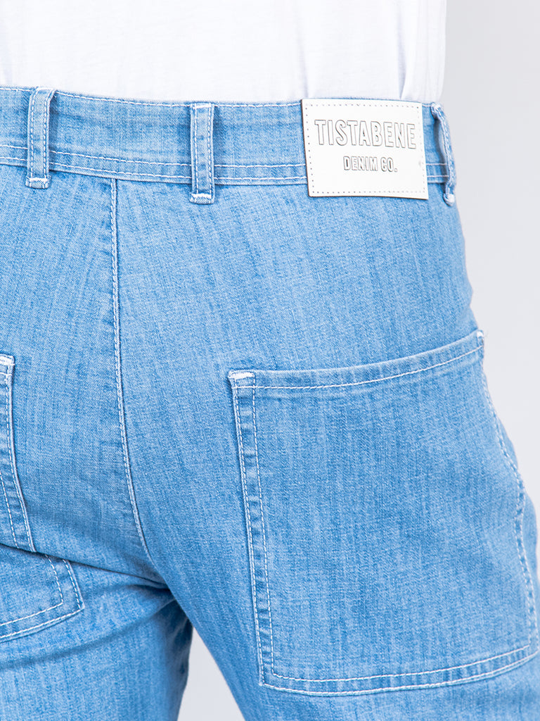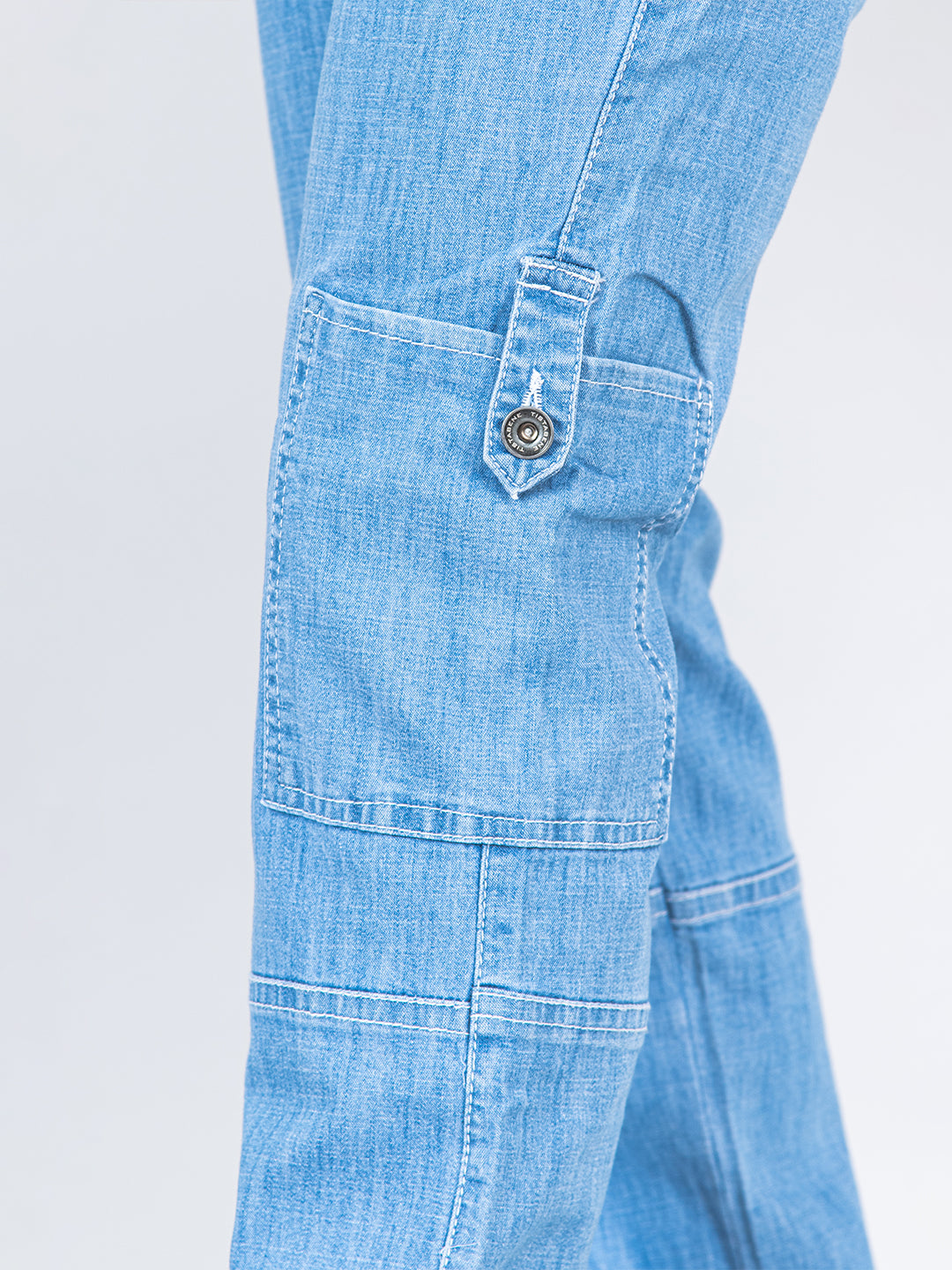 Light Blue Comfort-Fit Cargo Denim Jeans