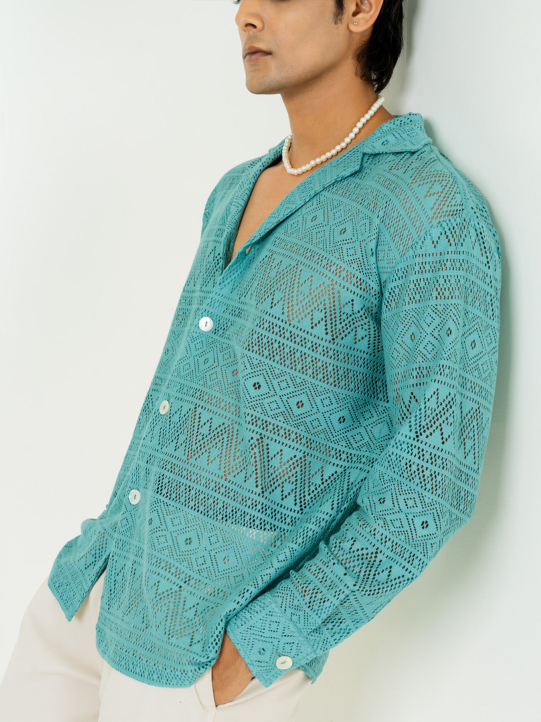 About the product- Light Blue Crochet Full Sleeves Cotton Shirt is the modern day aesthetic that can not be beaten! The shirt gives a very classy and comfy look that can steal everyone's attention!