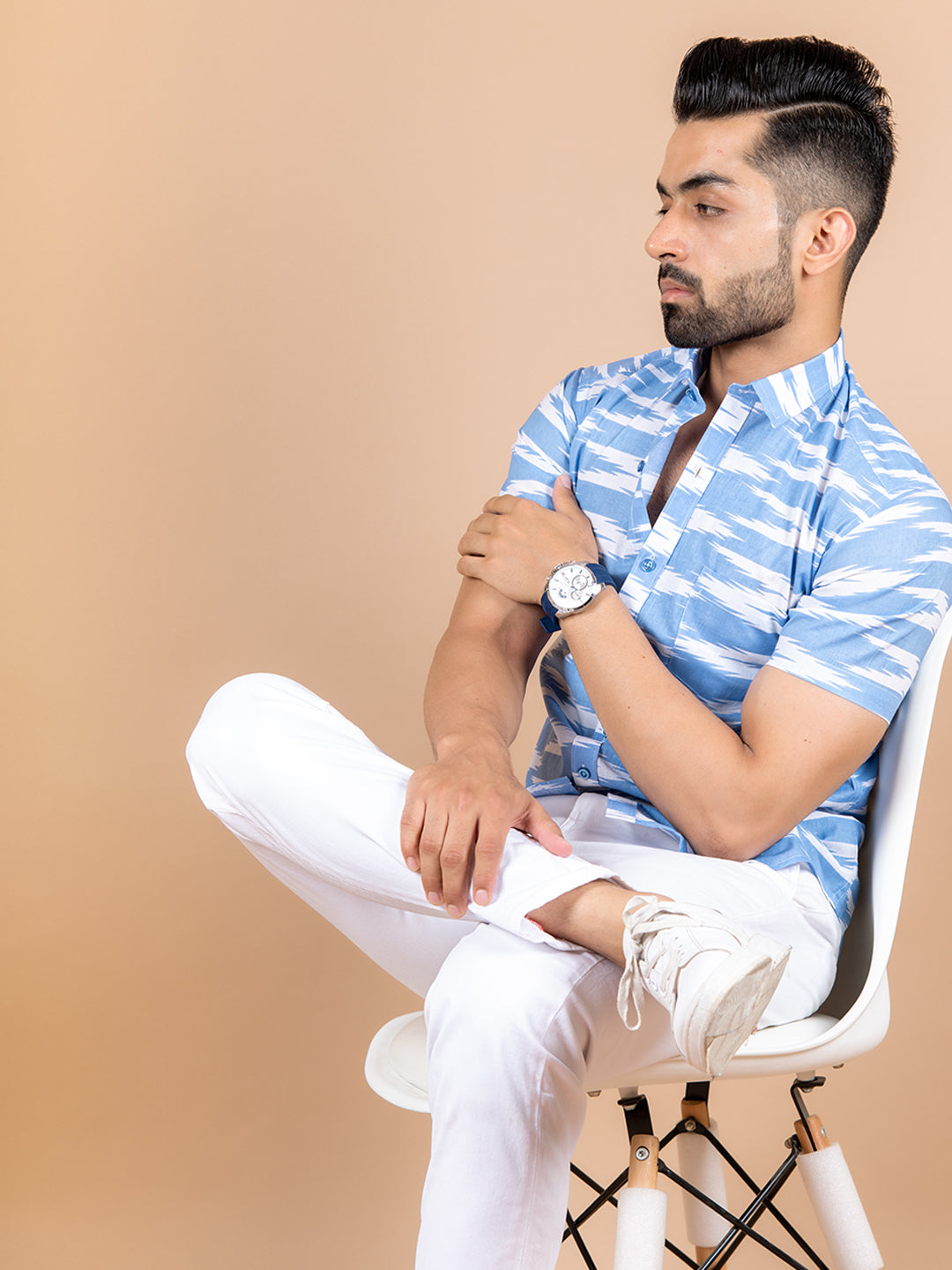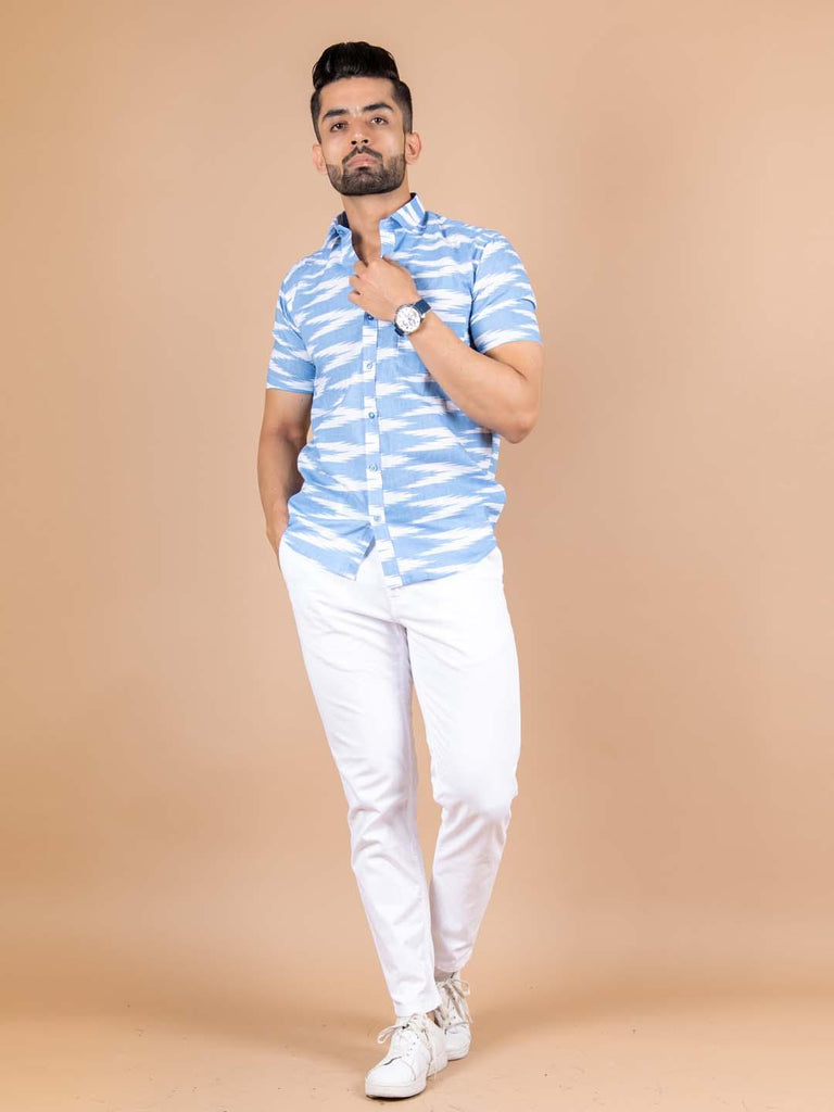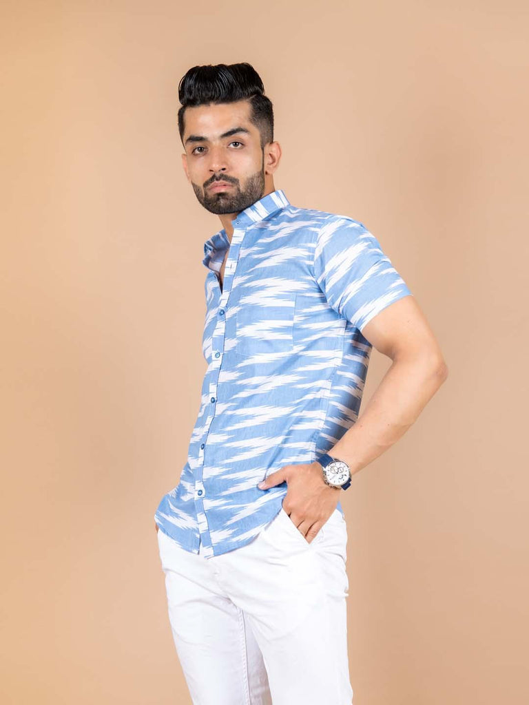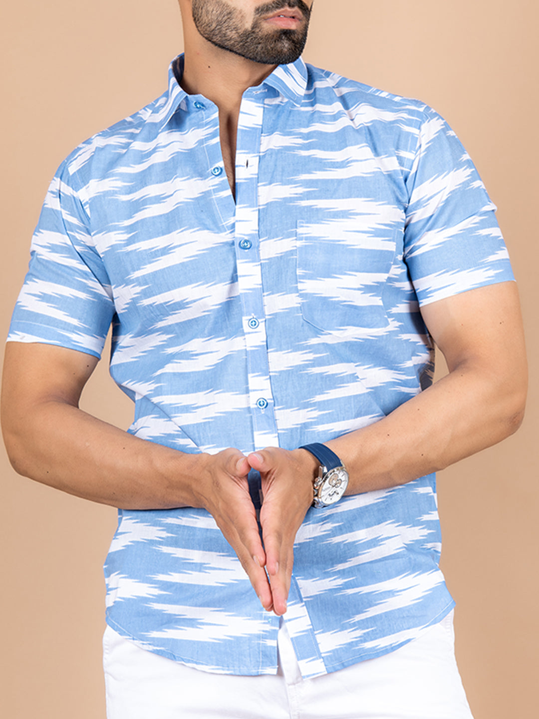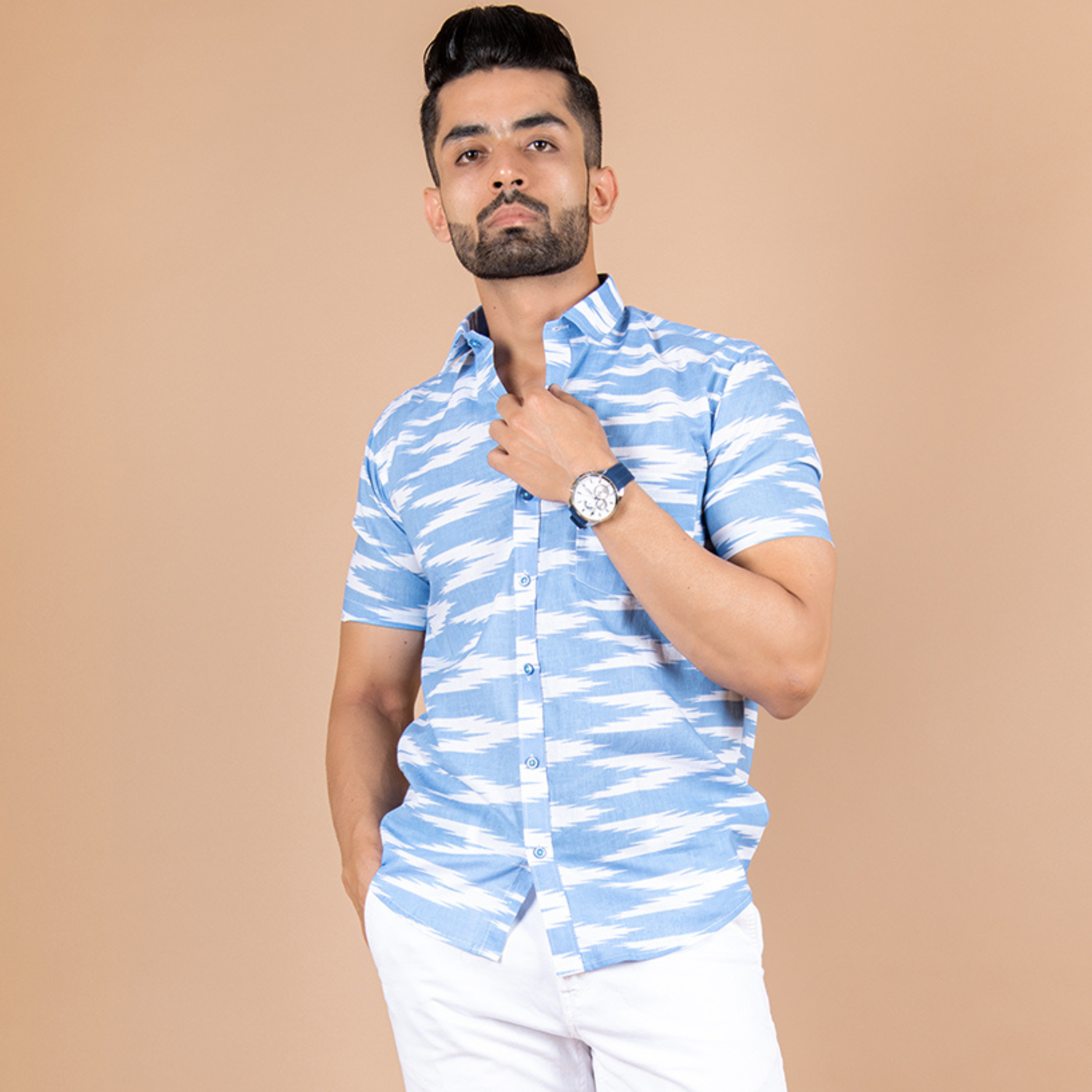 About Product- Light Blue Ikat Printed Cotton Half Shirt is truly comfortable and easy to wear in every season. Enhance your look by wearing this shirt from Tistabene’s collection.