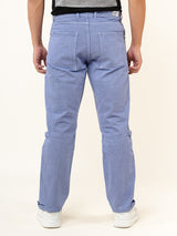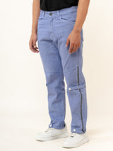 Light Blue Straight Fit Side Zipper Denim Cargo