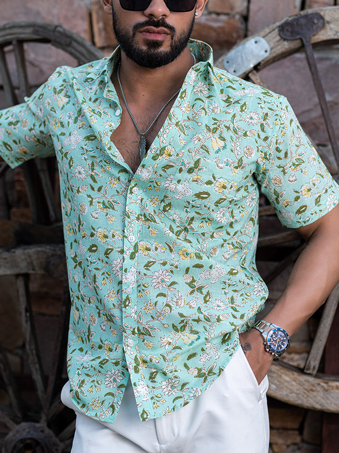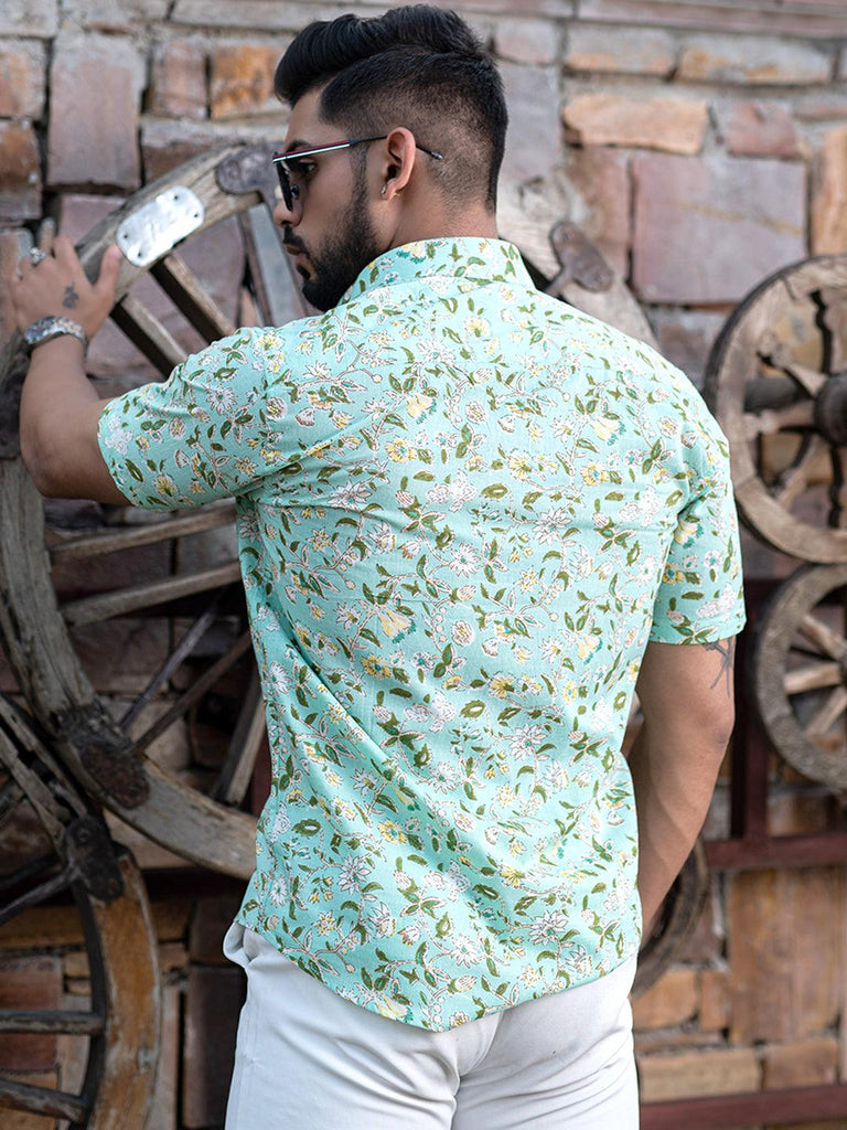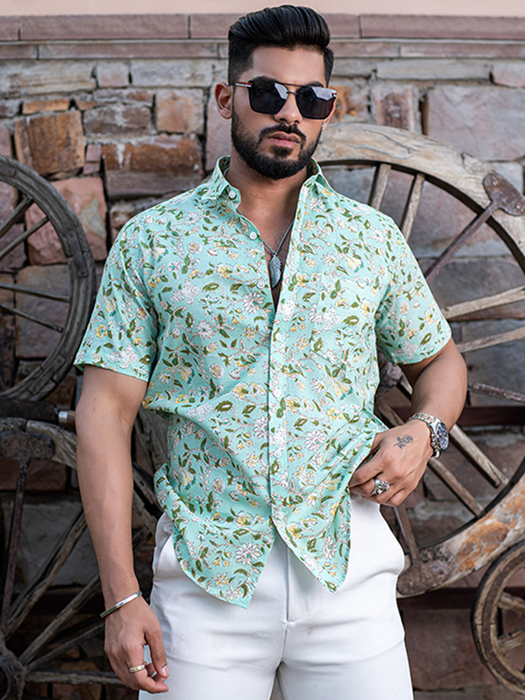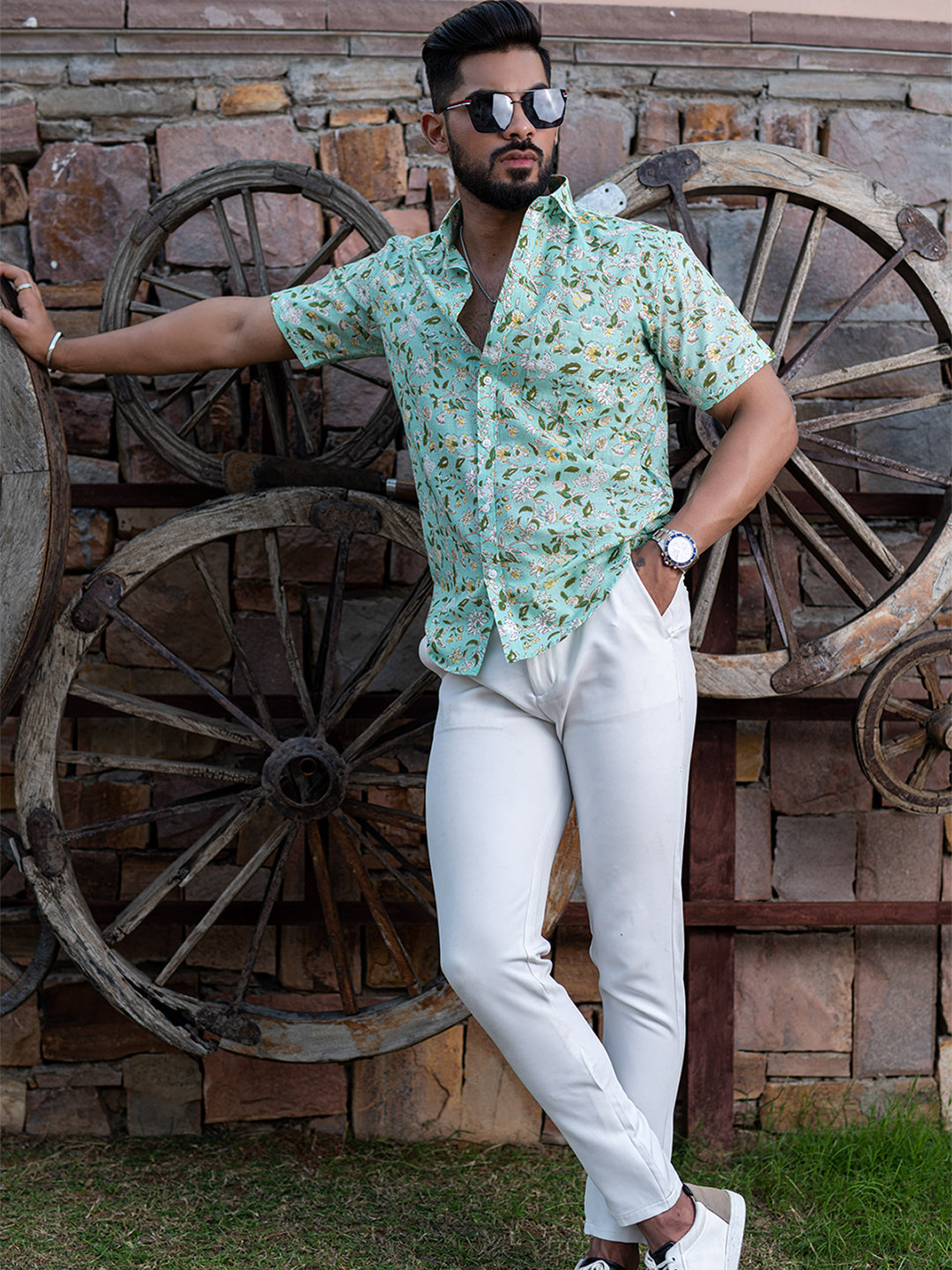 About the product: This Light Green Chintz Printed Half Sleeves Cotton Shirt is made to make you look smart. This comfortable shirt is definitely a must in your wardrobe.