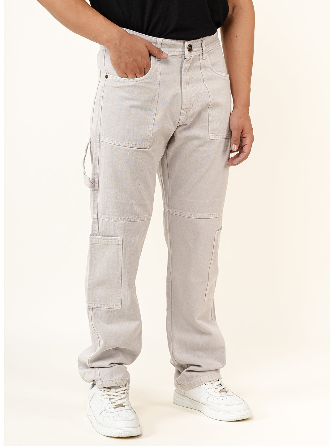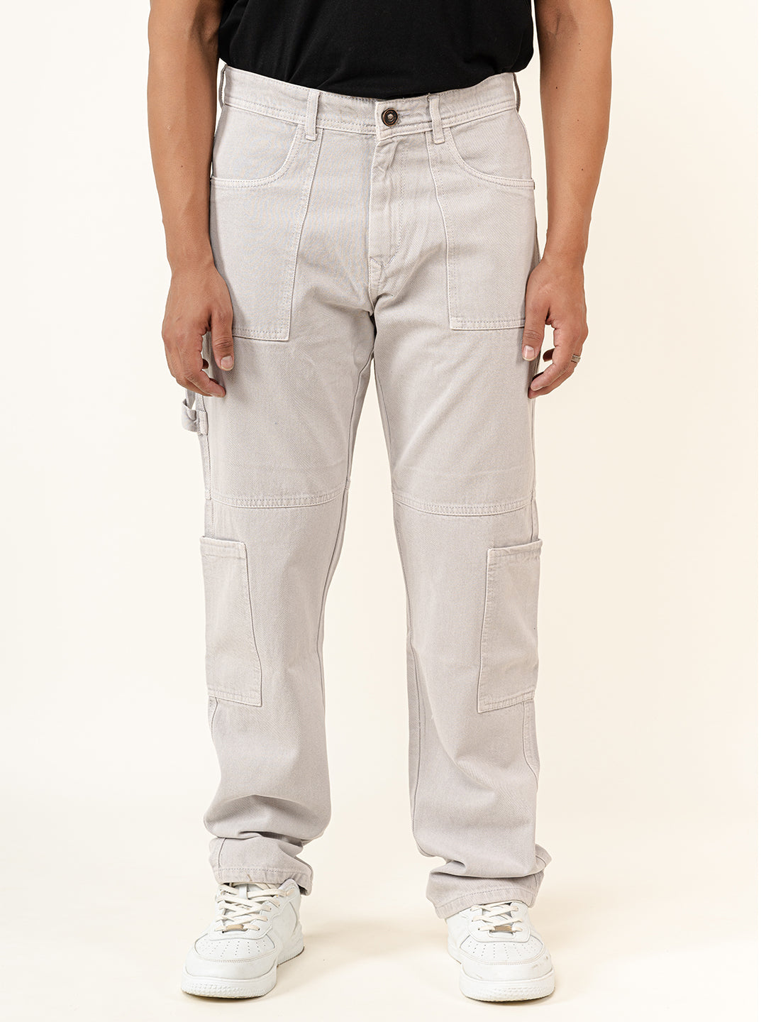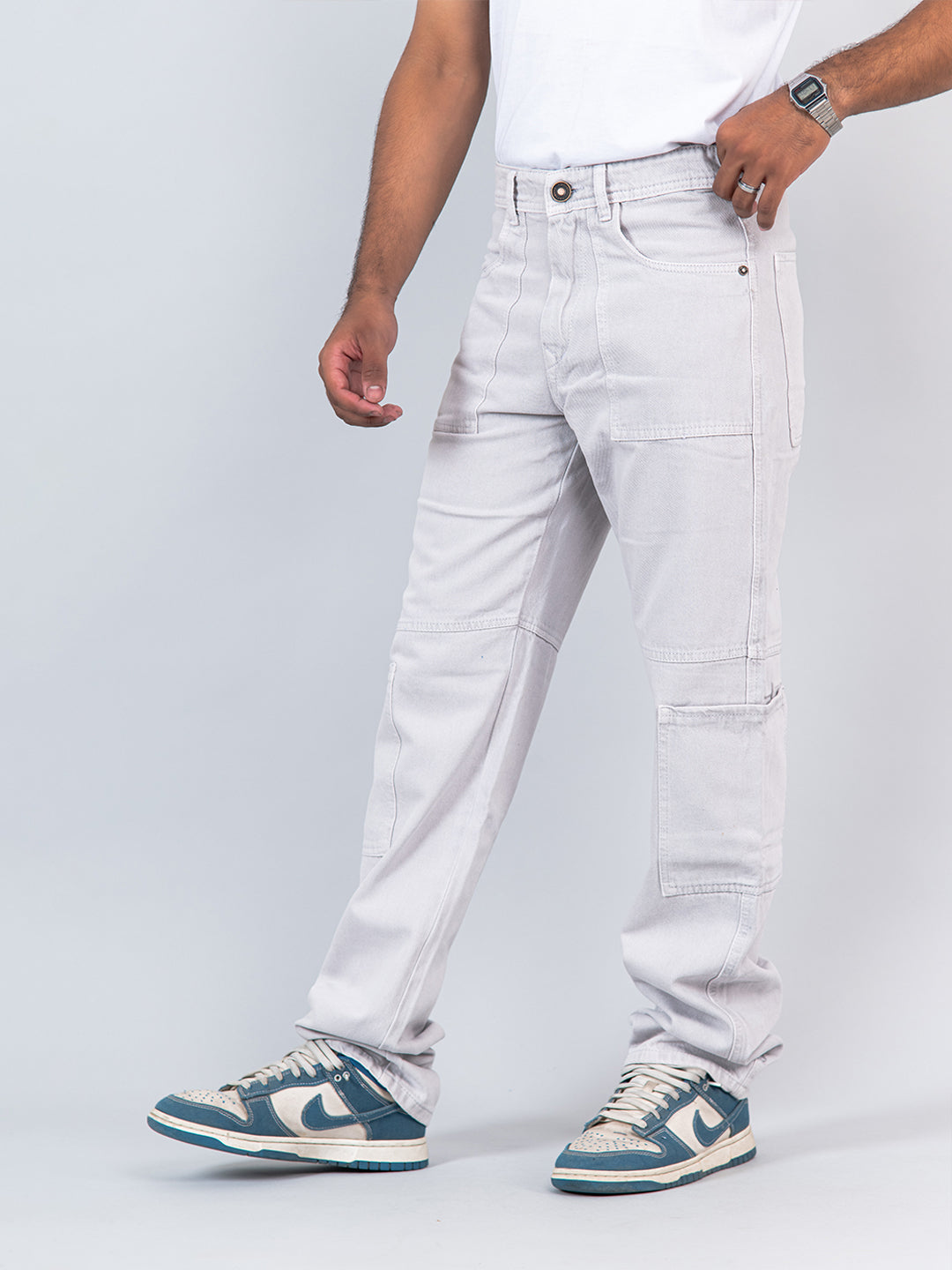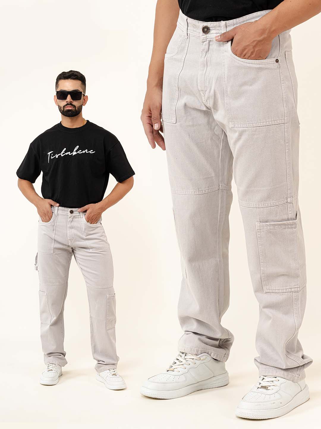 Occasion-Light Grey Straight Fit Cargo Denim Jeans Perfect for casual evenings, weekend breakfasts, and casual outings. These jeans are appropriate for a variety of events and seasons because of the classy light grey color.