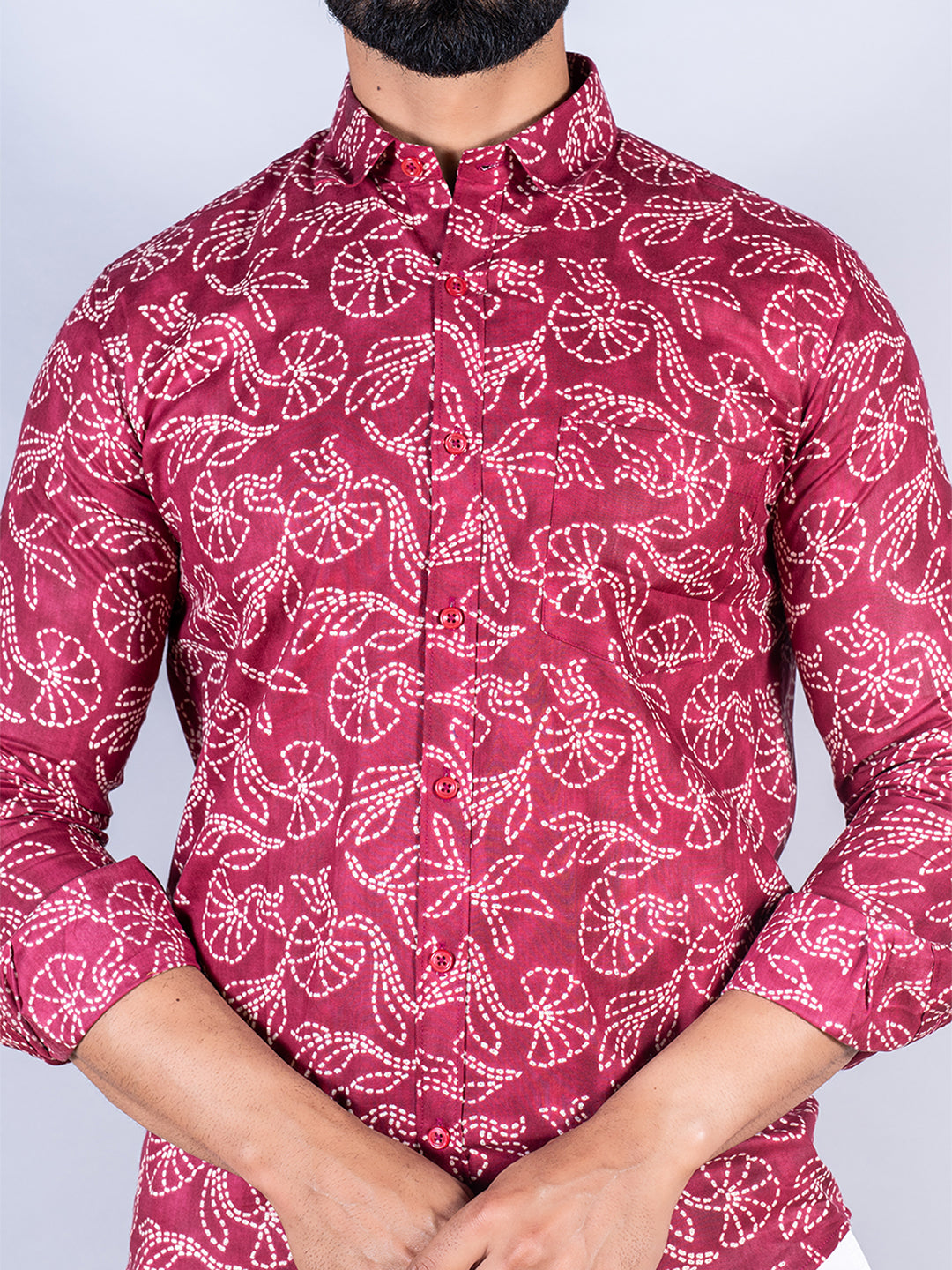 About the product: This maroon floral printed full sleeves cotton shirt is made to make you look smart. This comfortable shirt is a must inside your wardrobe.