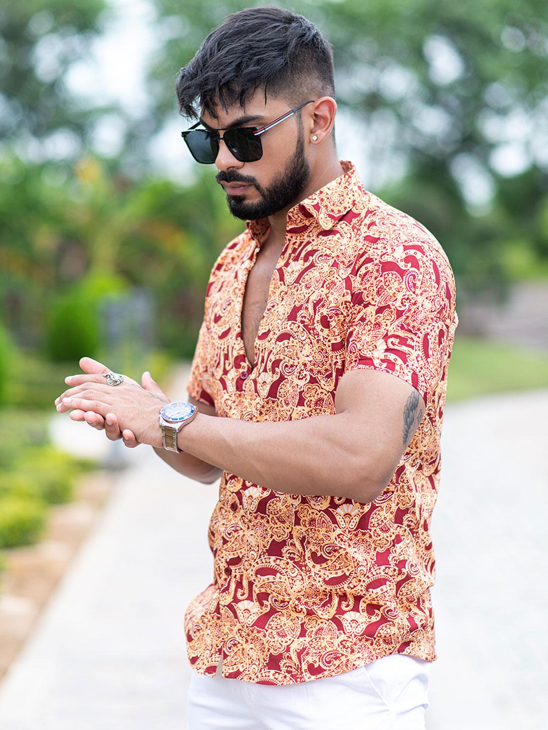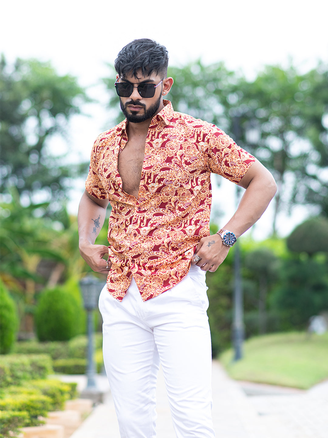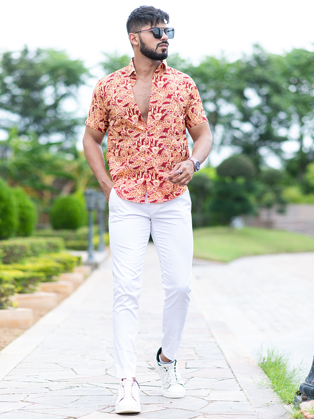 About the product- Explore the collection of beautifully designed shirts from Tistabene. This Maroon Paisley Printed Half Sleeve Crepe Shirt is your wardrobe essential and makes you look trendy!