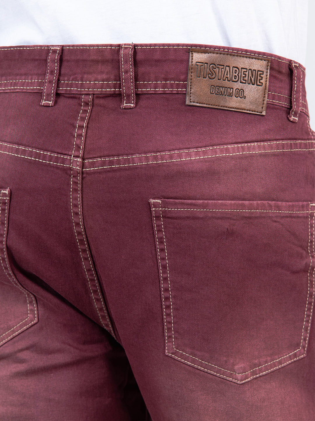 Maroon Ripped Cropped Slim Fit Denim Jeans