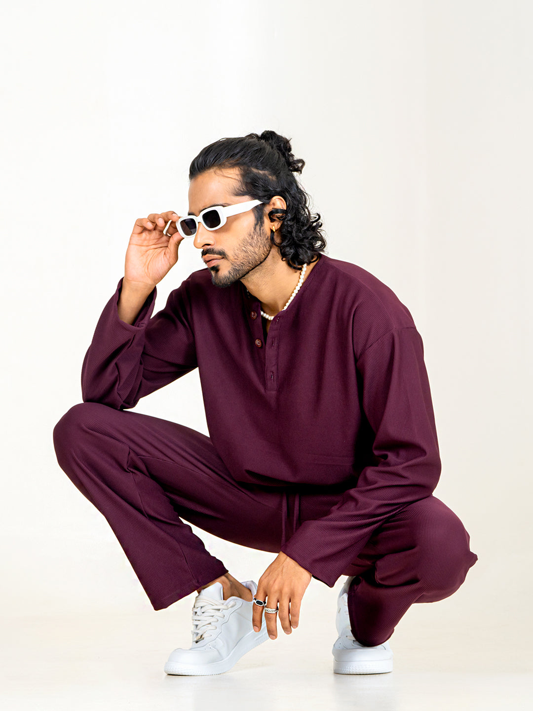 This Maroon T-Shirt and Pants Co-ord Set, crafted from soft, durable corduroy, brings a blend of comfort and style. The rich maroon shade adds an effortlessly sophisticated touch to your look.