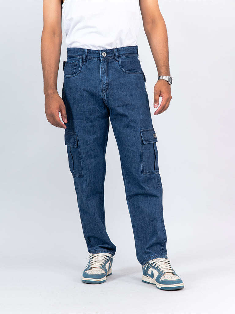 Style Tip: Embrace a casual yet stylish look by pairing Cargo Denim Jeans for men with a crisp white shirt.    The baggy-fit adds a casual-cool vibe to your outfit.
