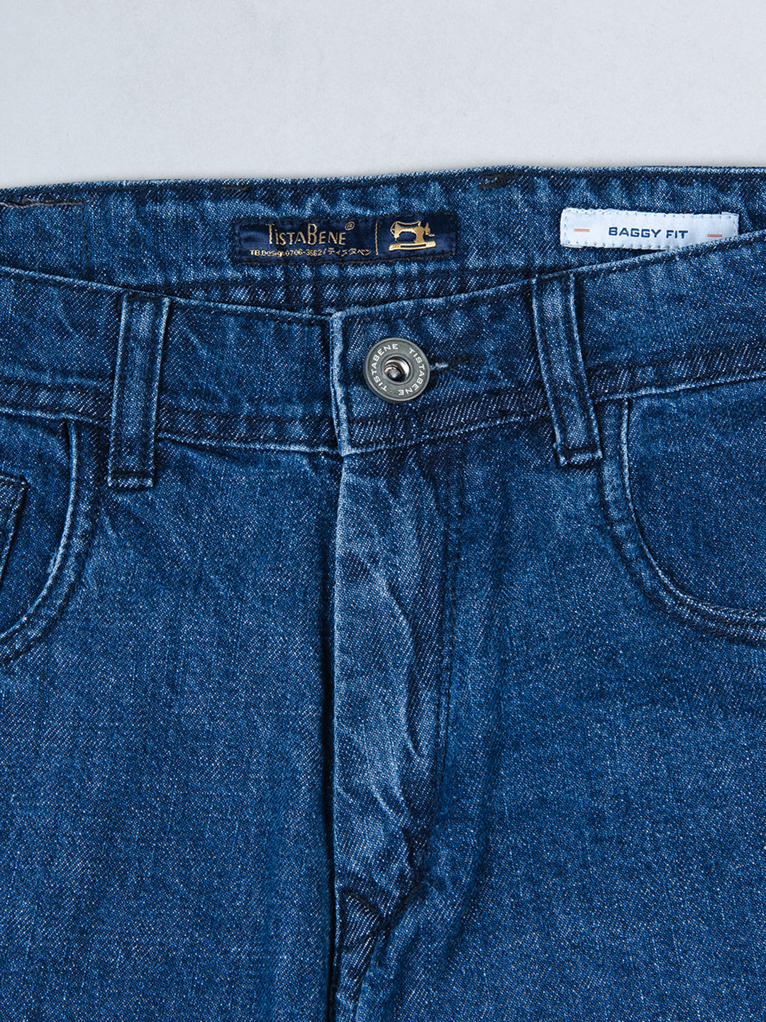Update in our Mid Blue Baggy-Fit Cargo Denim Jeans to upgrade your casual look. made from high- quality cotton, offering comfort and a modern fashion impression.